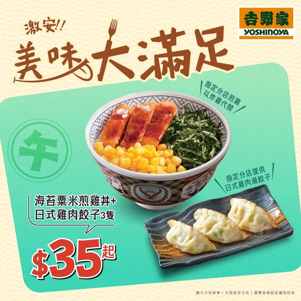 海苔粟米煎雞丼(大) +日式雞肉餃子(3隻) $35起