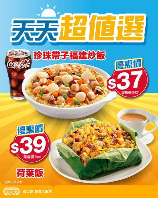 大家樂天天超值午市之選丨$37珍珠帶子福建炒飯+$39荷葉飯