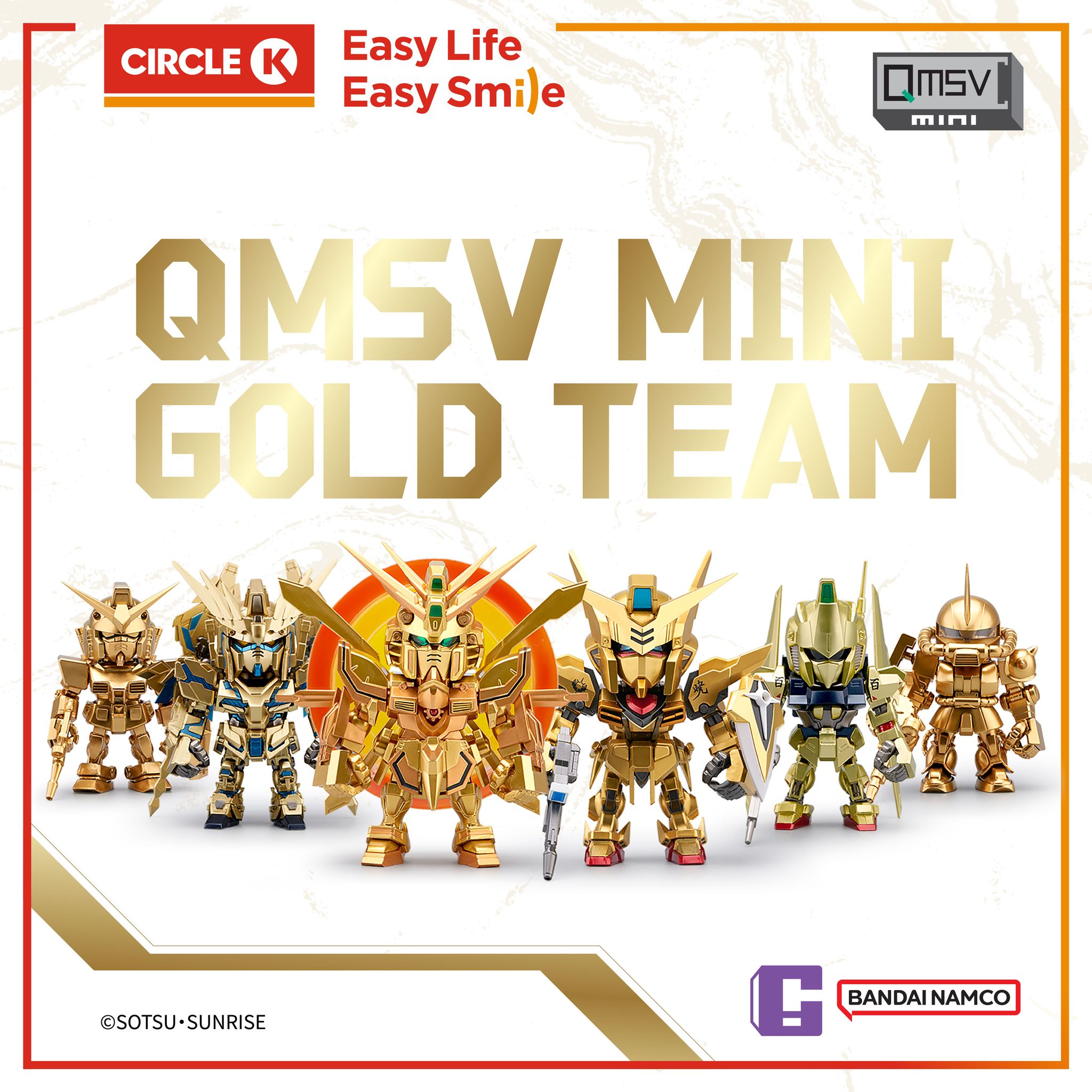 以黃金色為主題嘅「QMSVmini GOLD TEAM」華麗現身喺Circle K!多款人氣高達機體換上金甲,氣勢磅礴