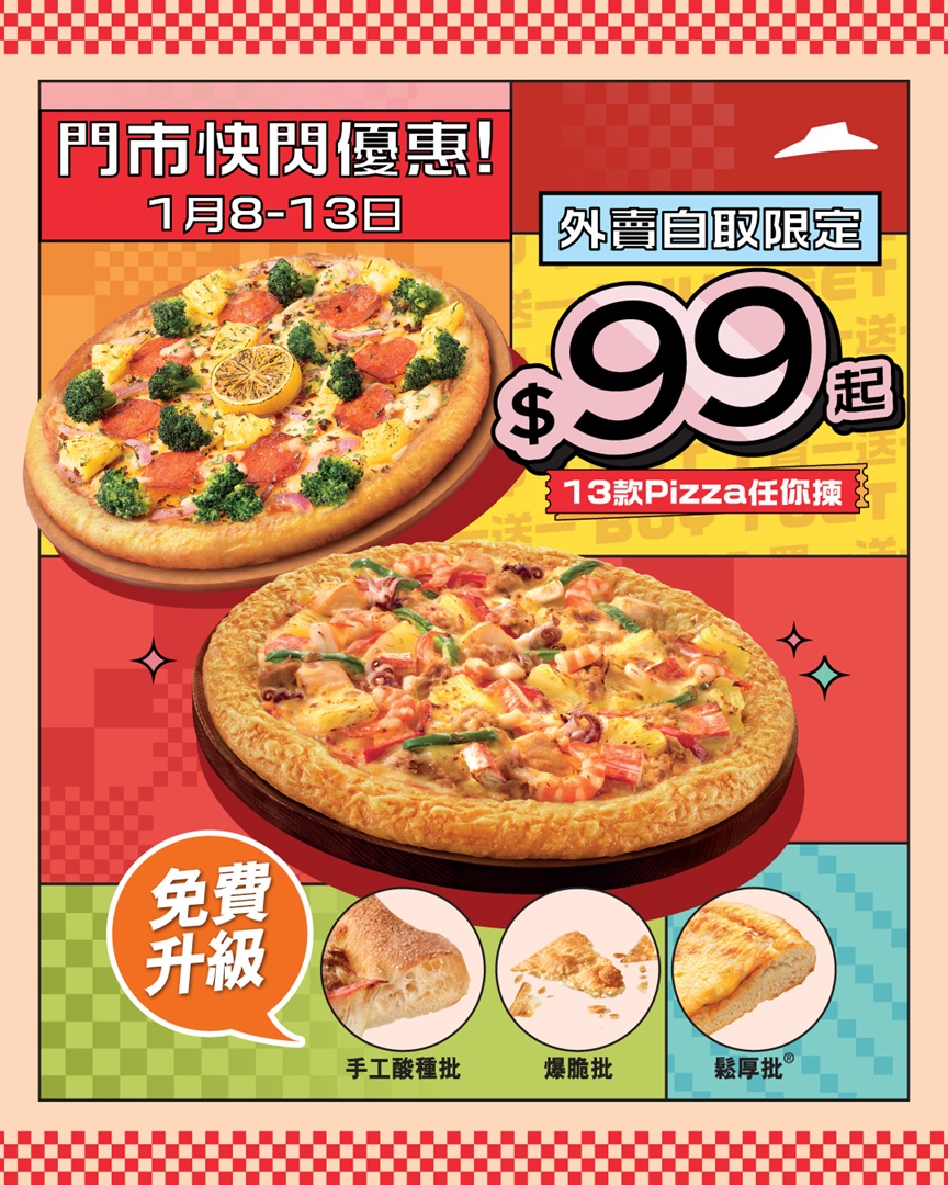 】咁抵得唔得㗎?1月8號起至1月13號,只要喺Pizza Hut 門市落單