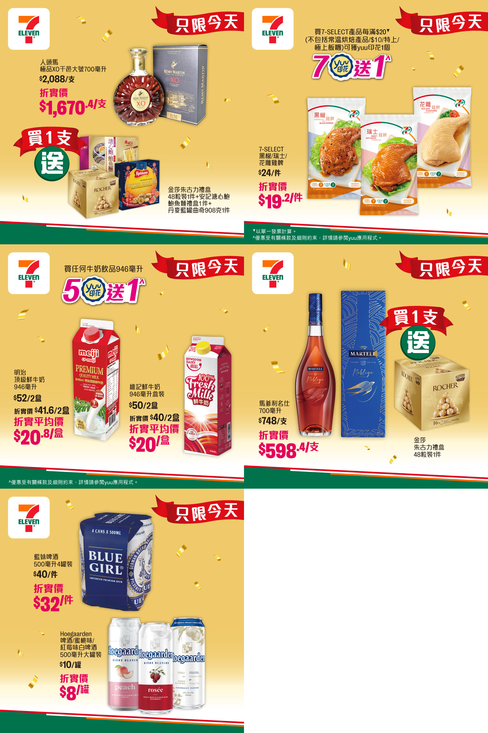 ^優惠不可與其他折扣優惠及優惠券(包括但不限於yuu會員折扣優惠)同時使用,亦不適用於購買7仔預購貨品、yuu獎賞預訂貨品、報紙、雜誌、香煙、奶粉、尿片、旅行箱、印花推廣活動換購品、現金券、禮券、網上遊戲點數、集換式卡牌遊戲、收藏卡、流動電話儲值卡/電話卡/增值券、八達通卡/產品、澳門通卡/產品、禮品卡、預付卡、各款入場券/車票/郵票、塑膠購物袋收費及其他服務項目。