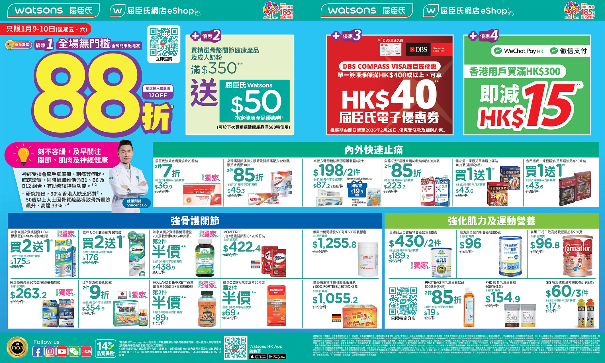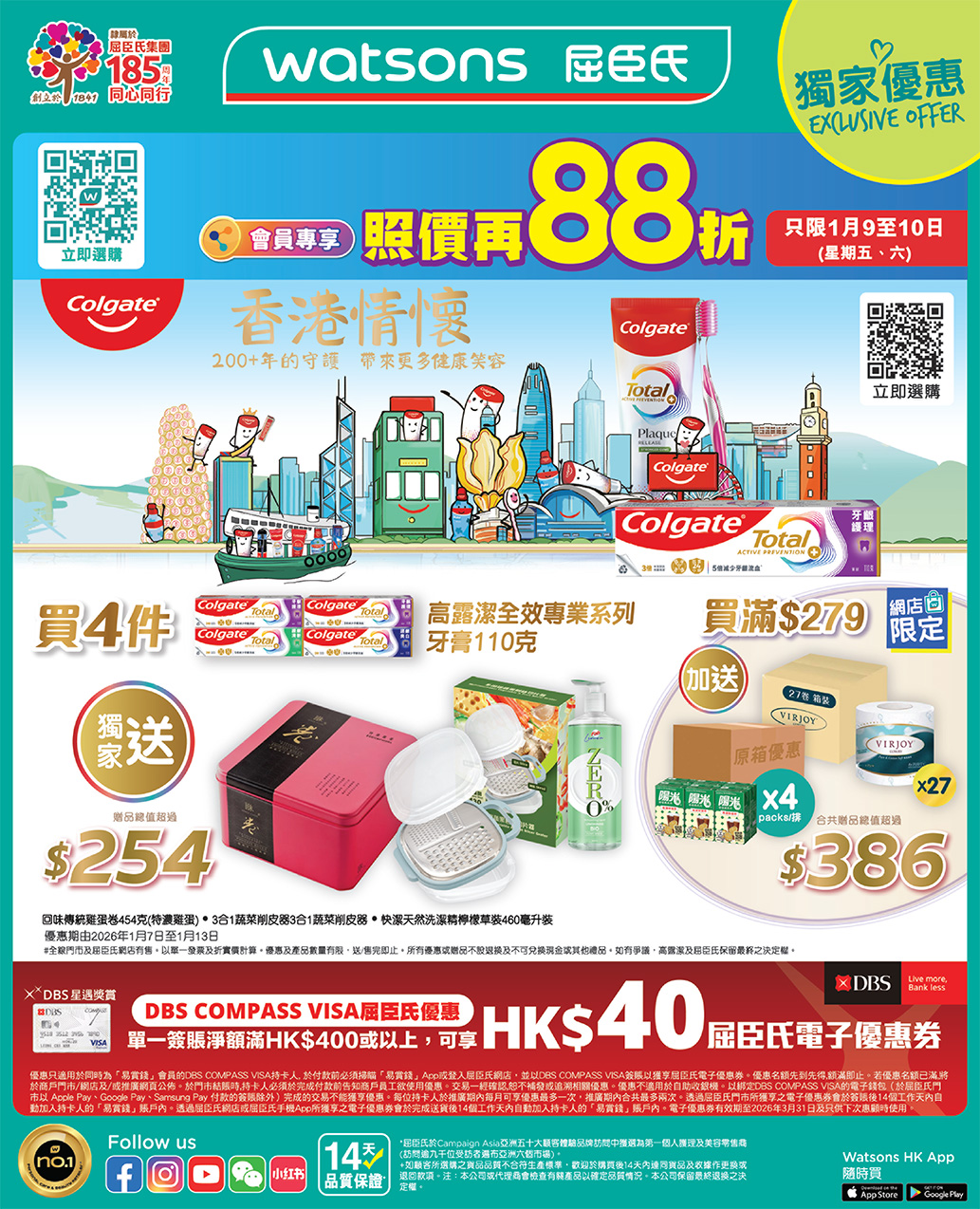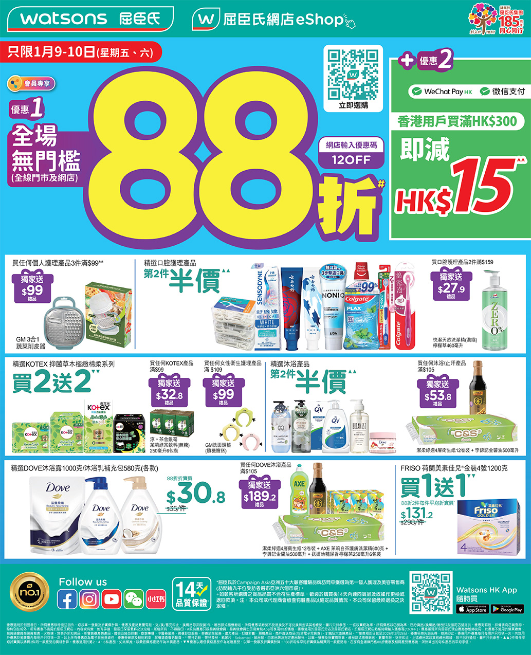 【 1月9-10日 (星期五、六) 屈臣氏全場無門檻88折