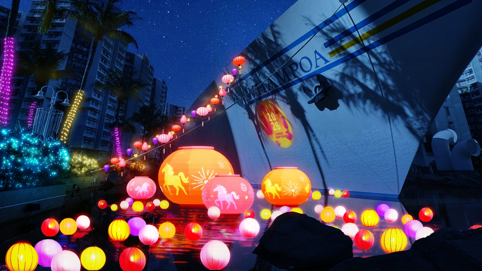 今個新春,黃埔天地將璀璨呈獻【幸福緣定桃花園】活動,以逾200個繽紛花燈及無數閃爍燈飾把黃埔號打造成4大迷人熱鬧、日夜皆醉的打卡花海,亮點包括5米高巨型桃花樹彩燈拱門,以及由130個幻彩燈籠組成的絢麗燈海。