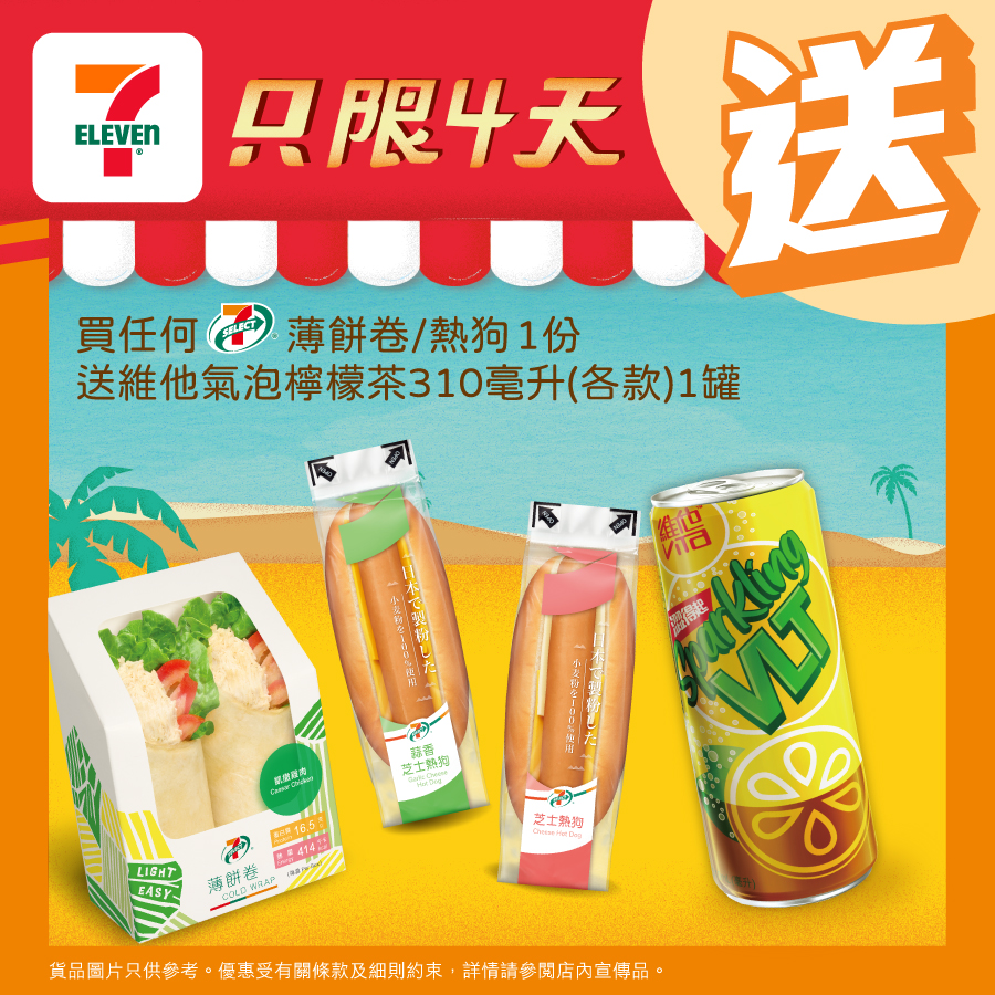 買7-SELECT薄餅卷 / 熱狗送維他氣泡檸檬茶310毫升