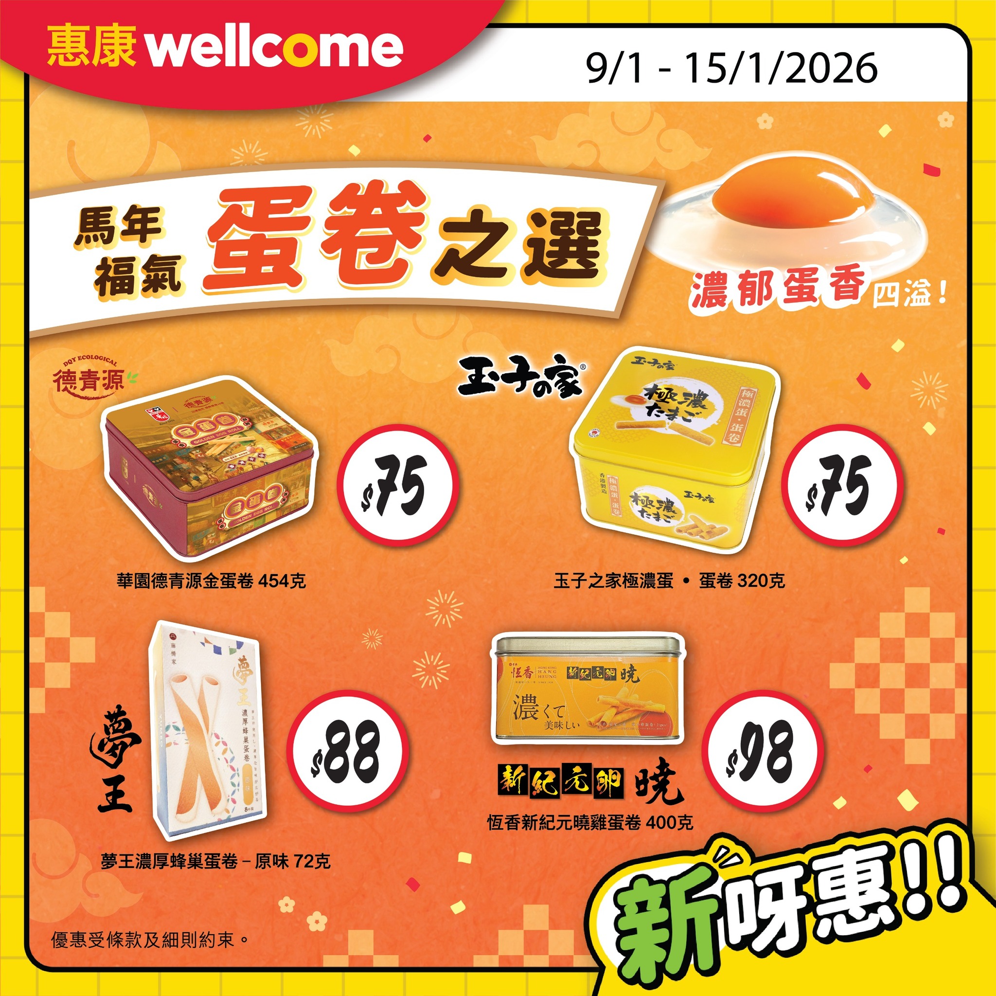 ,唔好錯過多款新登場嘅產品!今期惠康有李祥和蘿蔔糕預拌粉及精選蛋卷,快啲嚟入貨啦