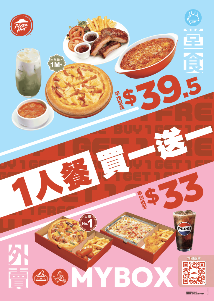 年尾荷包「見底」?Pizza Hut幫你新一年慳住歎!由 1月15日至2月11日,首次推出 全日供應一人餐買一送一,堂食及外賣同時適用!精選人氣迷你必勝批、意粉、焗飯及主菜,任你自由配搭,平均每份低至 $33*!返工、放學、聚會,想慳錢又食得滋味,Pizza Hut一人餐絕對是你的新年救星!立即約埋朋友,一齊以超高CP值享受美食!