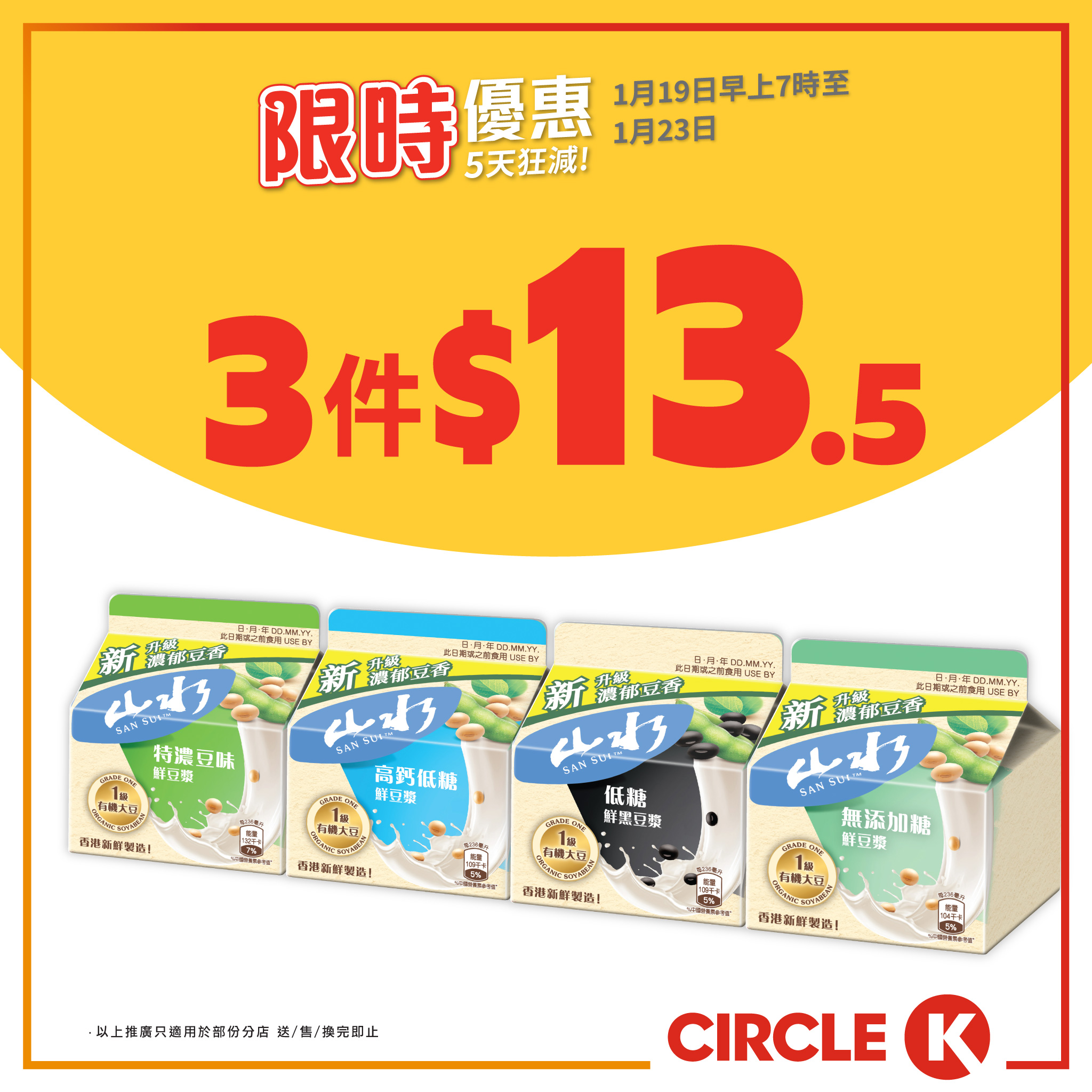 【5天狂減】維他山水豆漿236毫升限時優惠.返工返學想食得清爽又有飽足感,飲返盒順滑嘅山水豆漿就啱晒喇!特濃豆味鮮豆漿、低糖黑豆漿、高鈣低糖鮮豆漿、無添加糖鮮豆漿,多款口味任你揀,無論早餐配麵包定係下午茶配小食都一樣咁正,豆香濃郁,一飲就愛上!.維他奶 山水豆漿(各款)236毫升 → 3件都係$13.5.推廣日期:1月19日早上7點起至1月23日.#CircleK #OK便利店 #維他奶 #豆漿 #黑豆漿 #豆奶 #低糖 #無添加糖 #限時優惠 #5天狂減 #jetso
