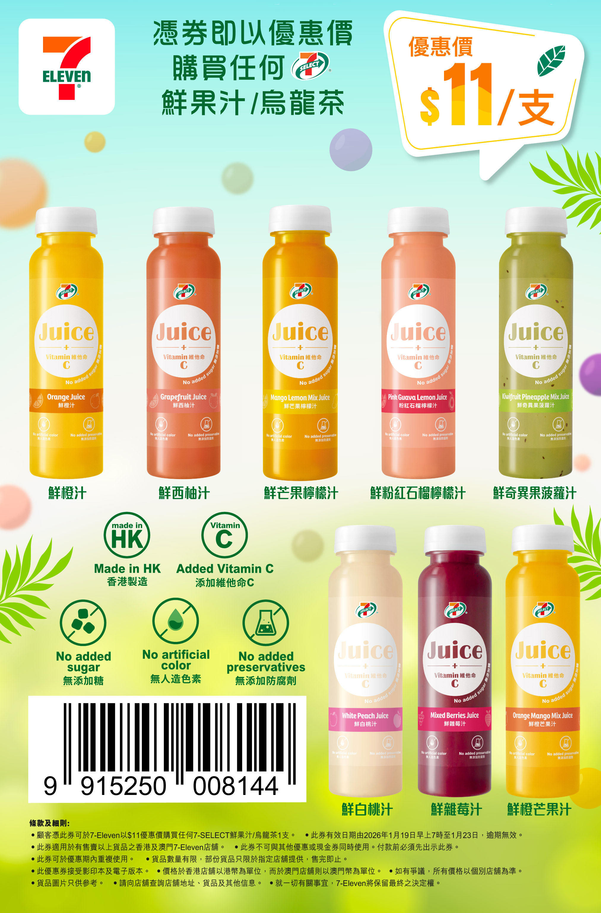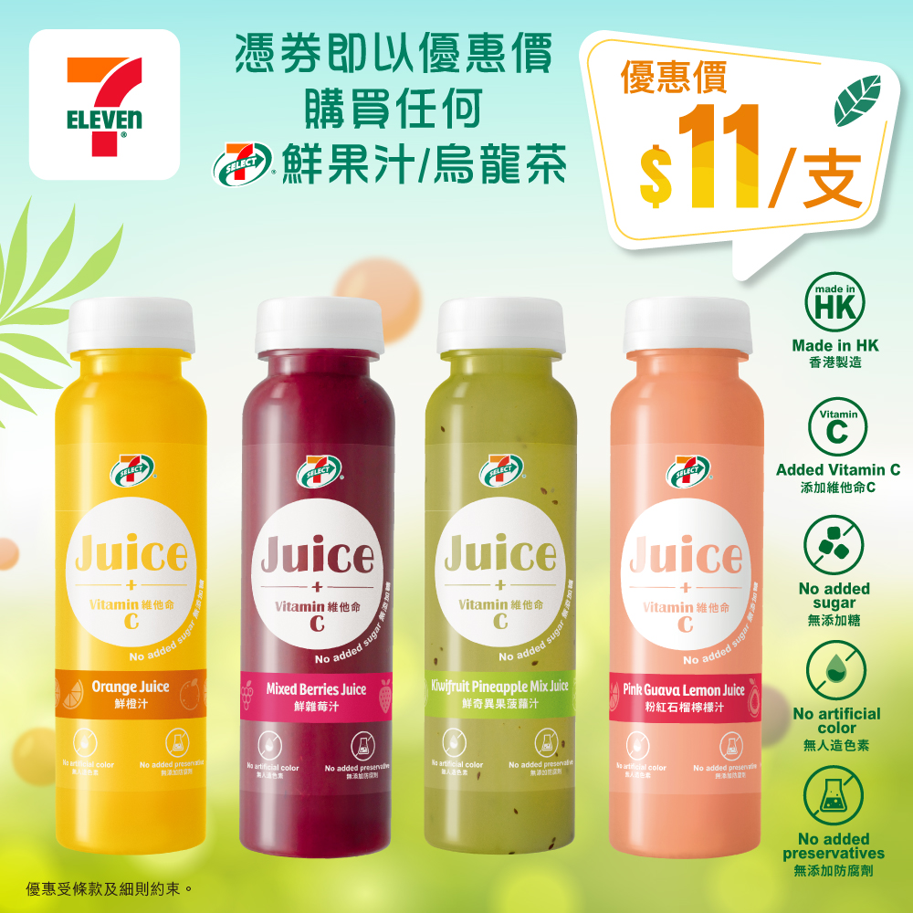 【#快閃優惠】🌟7-SELECT 鮮果汁/烏龍茶 $11