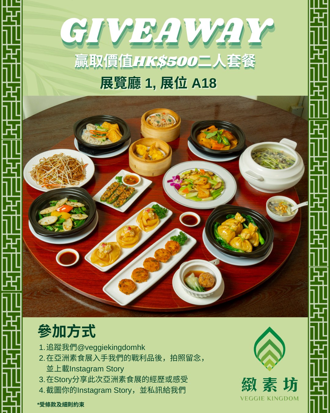 為了回饋支持者,我們將選出一名幸運兒,贈予 「緻素坊雙人套餐」乙份(價值 HK$500)。讓客人與摯友一同細味匠心製作的素食料理,共享溫馨時光。