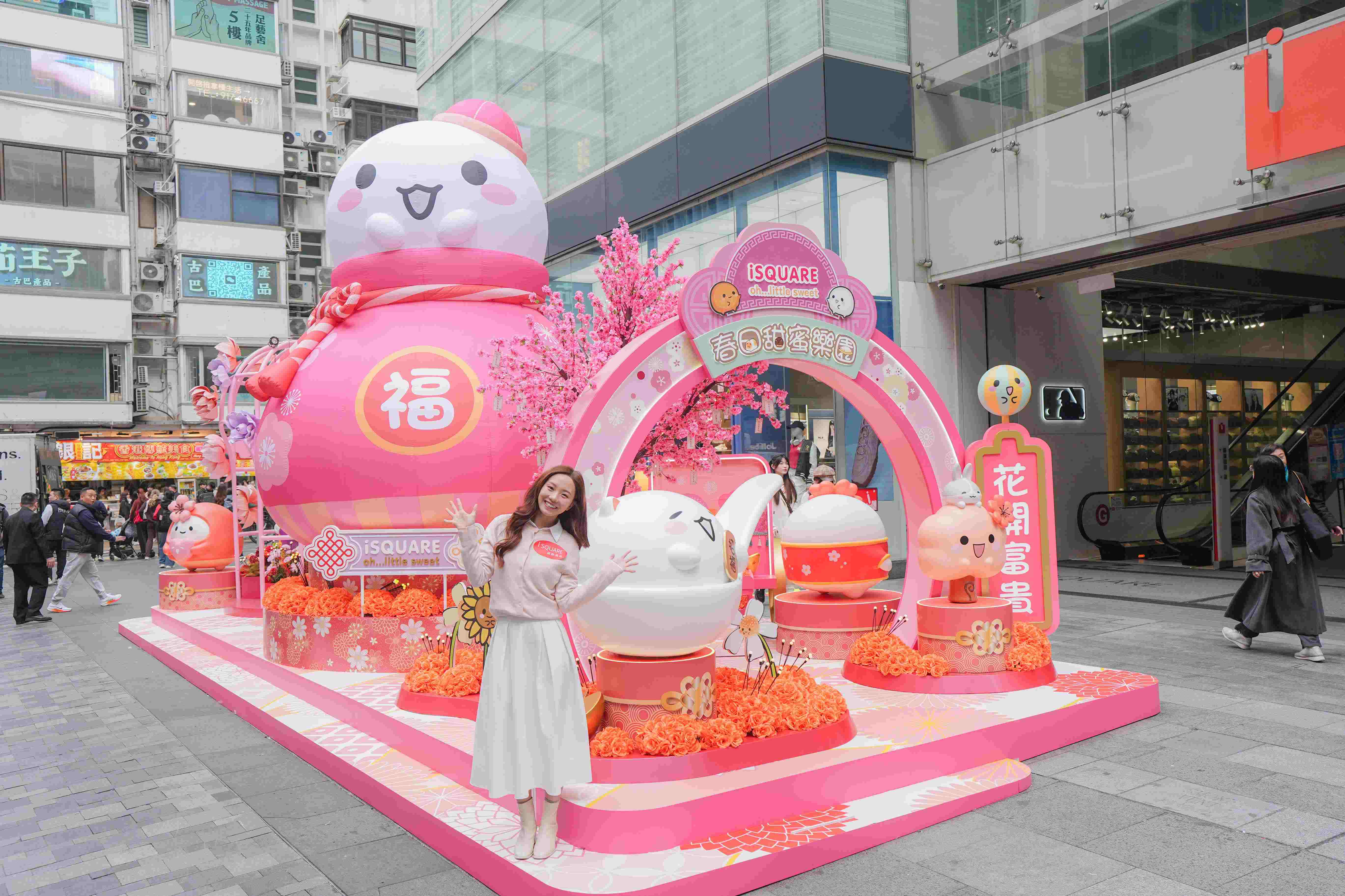 新年新氣象,iSQUARE國際廣場呈獻春日甜蜜樂園的新春甜蜜花園,繁花簇擁,絕對令人有新年萬象更新的幸福感。6大IG-able拍照點,祝福來年財運、事業、愛情、學業、健康等大豐收。迎面而來的,先是①春日庭園拱門,各位湯圓角色們已經準備就緒, 中式拱門及花開富貴的揮春,正是這趟新春甜蜜花園之旅的起始點。與門口的湯圓使者們一一合照後,穿越花叢,抬頭是笑口常開 ②5米高巨型團圓福袋,小湯圓在紅色綢緞製作的飽滿福袋中,得得意意的冒出頭來向各位拜年,以傾倒眾生的微笑傳遞的祝福格外溫暖。後方的 ③繁花似錦小庭園,以富貴吉祥的巨型牡丹,包圍整個有如鳥籠的雅緻小溫室,不要忘記與裏面可愛的小湯圓一起打卡。 游目四顧,另一邊④小湯圓巡遊,和風的轎前面,小湯圓穿上中式優雅喜慶的鮮紅服裝,祝大家出入平安、路路順風。⑤竹聲響起除舊歲,抹茶田圓花精靈祝大家新一年如桃花一樣絢爛,鴻圖大展。然後燃起爆竹,為大家送舊迎新。而二人角色的組合—葉子珍珠小精靈及桃花湯圓小精靈帶大家來到⑥心想事成櫻花園,桃花樹上掛上各種祈福的籤文,盛載大大小小的願望,祝願大家都能心想事成。