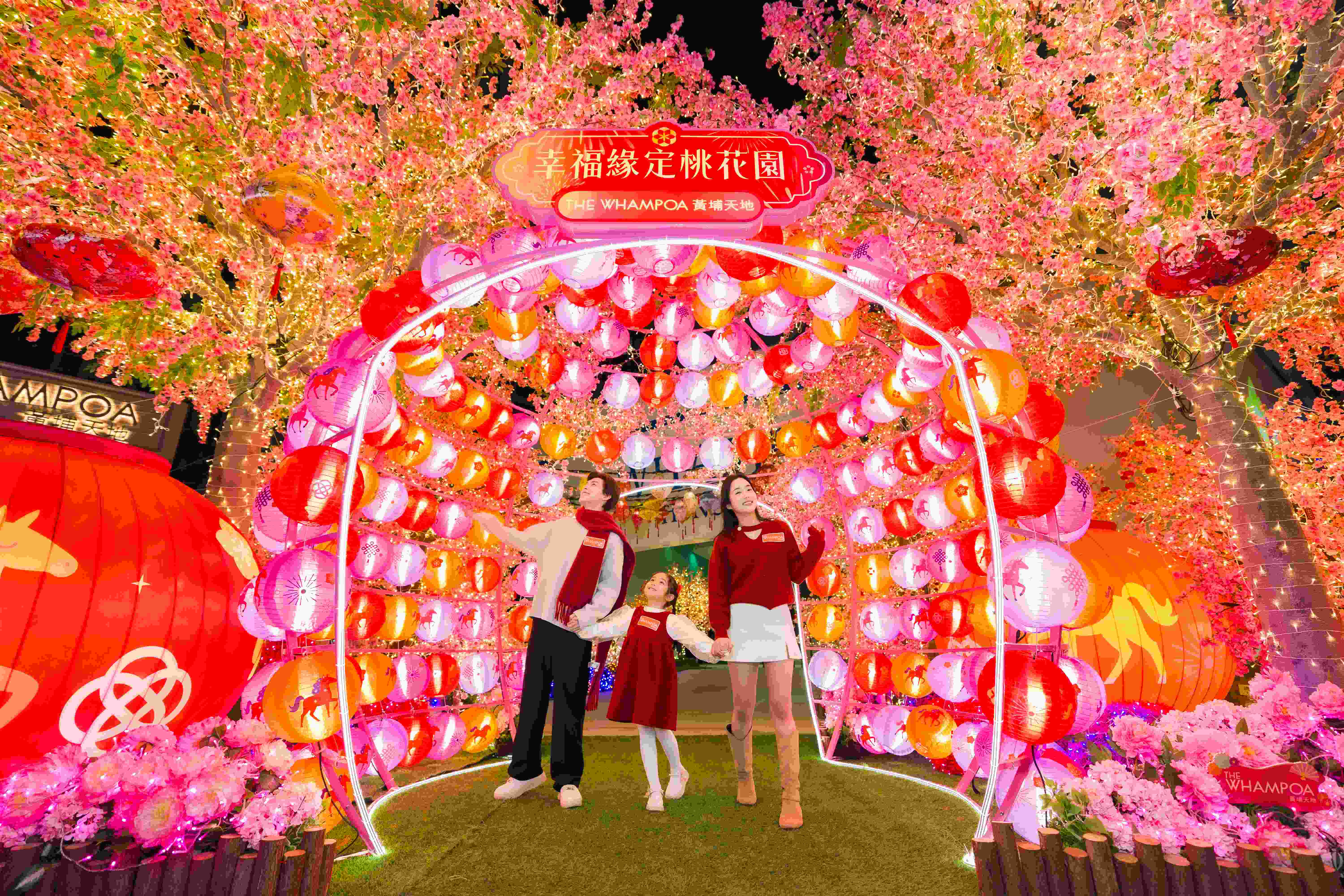 今個新春,黃埔天地由即日起至3月8日璀璨呈獻【幸福緣定桃花園】活動,以逾388個繽紛花燈及無數閃爍燈飾把黃埔號打造成4大迷人熱鬧、日夜皆醉的打卡花海,亮點包括5米高巨型桃花樹彩燈拱門,以及由130個幻彩燈籠組成的絢麗燈海,祝願馬年如花燈般明亮,如水流般順遂。適逢今年是丙午馬年,黃埔天地以融合傳統文化與現代美學設計、以栩栩如生的祥馬作為「駿馬獻瑞利是封」的主角,送上新春佳節的喜慶與祝福。