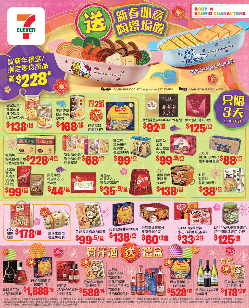 !買新年禮盒/指定零食產品滿 $228*,送你 Sanrio characters x Rody 新春如意陶瓷焗盤 1 件