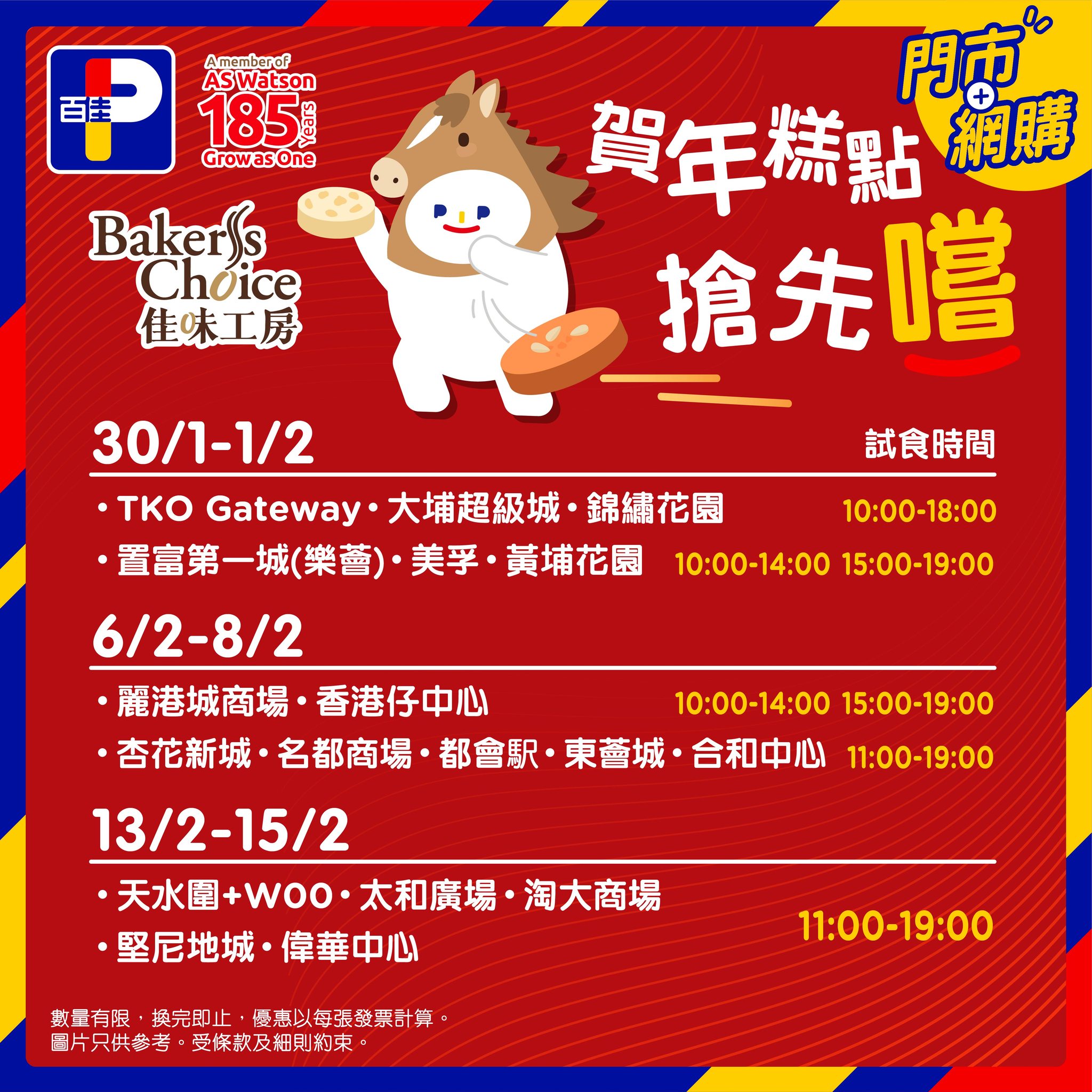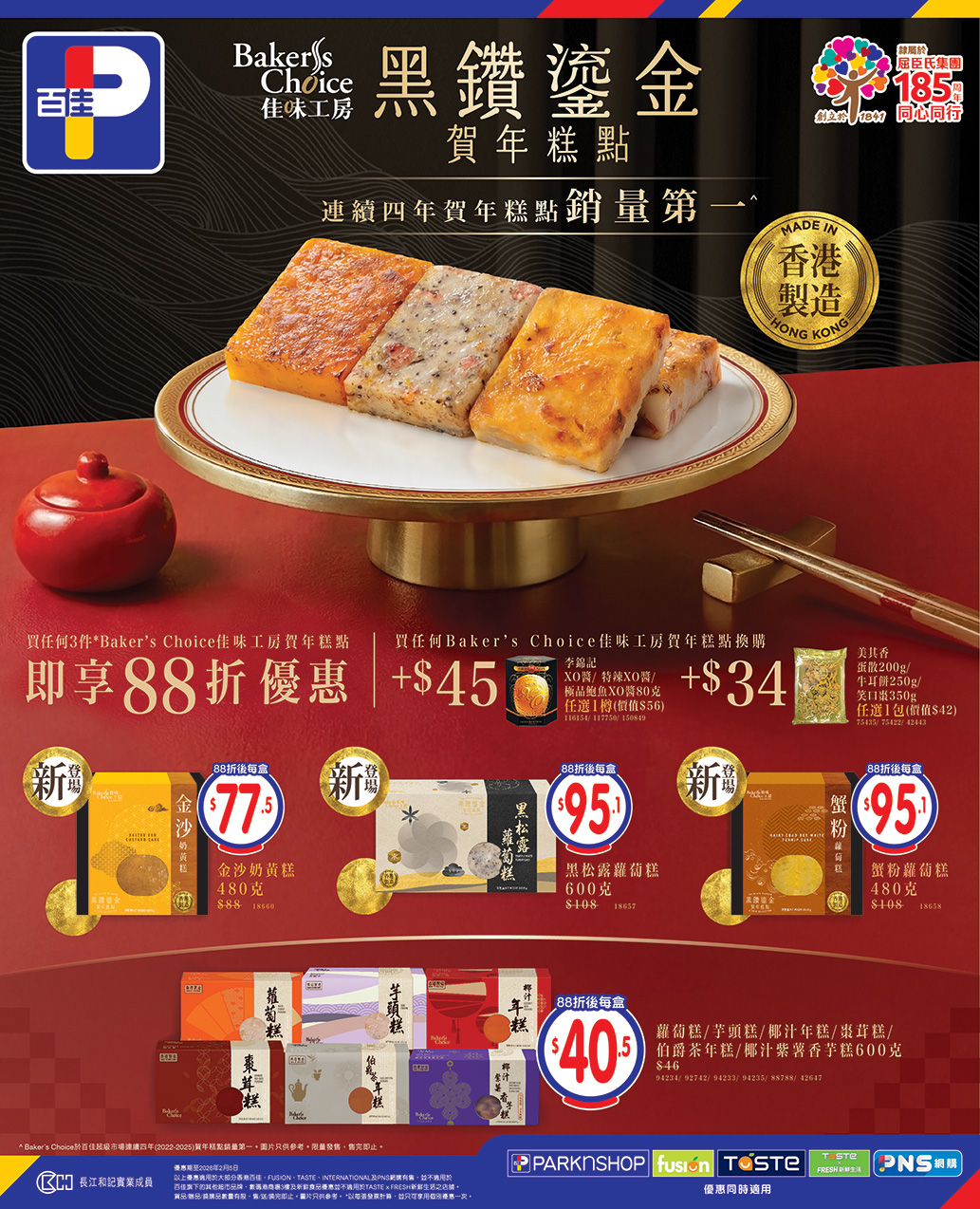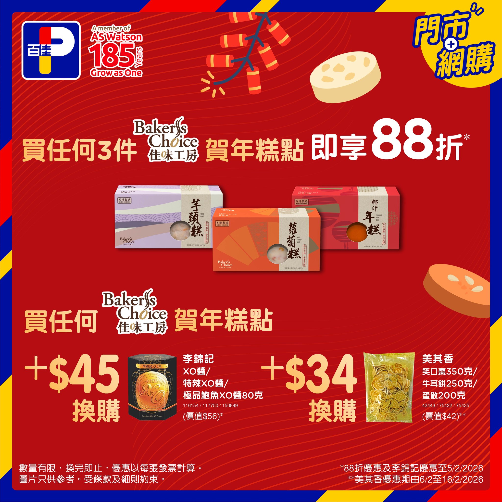 今年仲有益「佳」坊優惠,全線Baker‘s Choice 賀年糕點買3件即享88折*,仲可以用優惠價換購其他產品