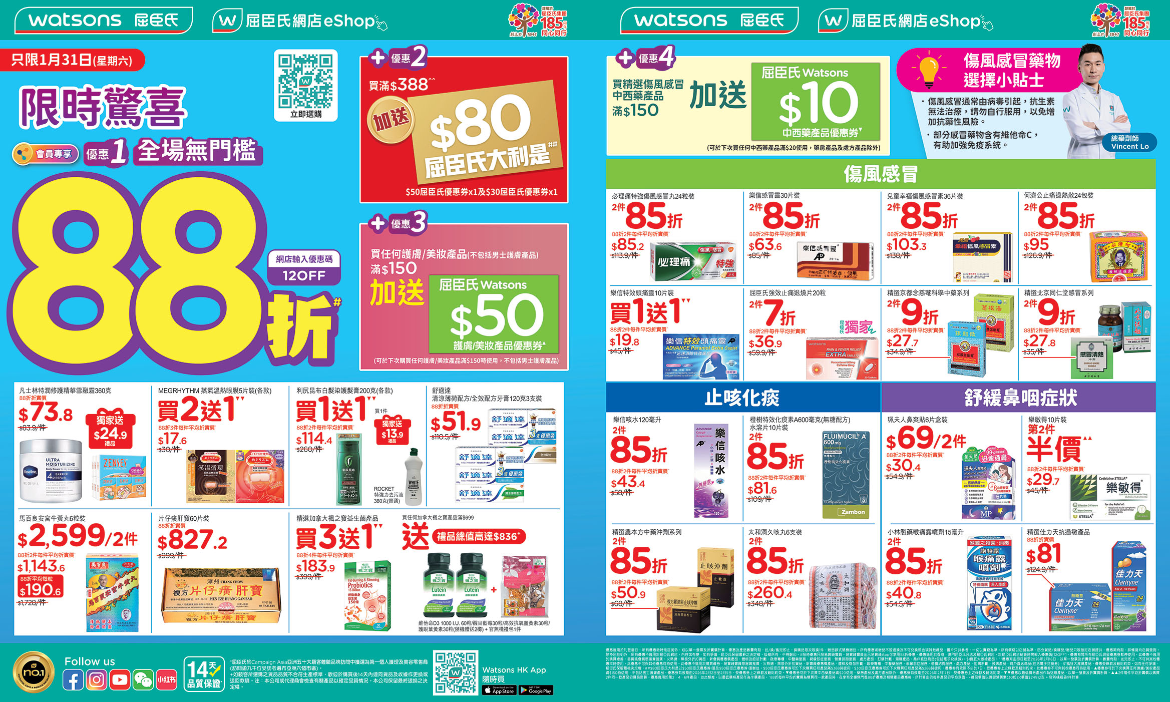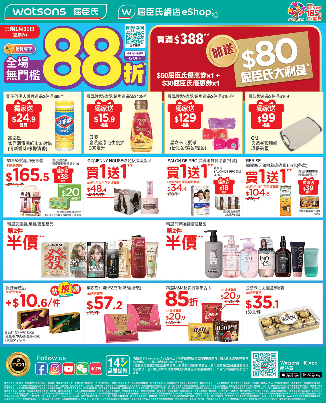 ,俾你一次過辦齊年貨,無論係招呼親友、自肥、拎去拜年都一樣啱!今個星期六 (1月31日) 易賞錢會員嚟屈臣氏門市同網店購物仲可享全場無門檻88折 + 額外拎走高達 $200 優惠券