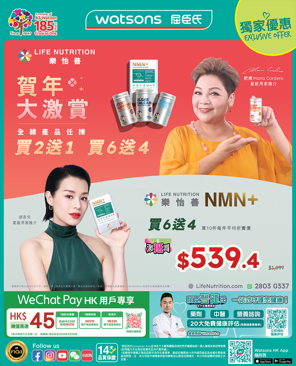 ▼優惠券可於下次買中西藥產品滿$20使用,藥房產品及處方產品除外,優惠券有效期至2026年2月17日,受優惠券上之條款及細則約束。