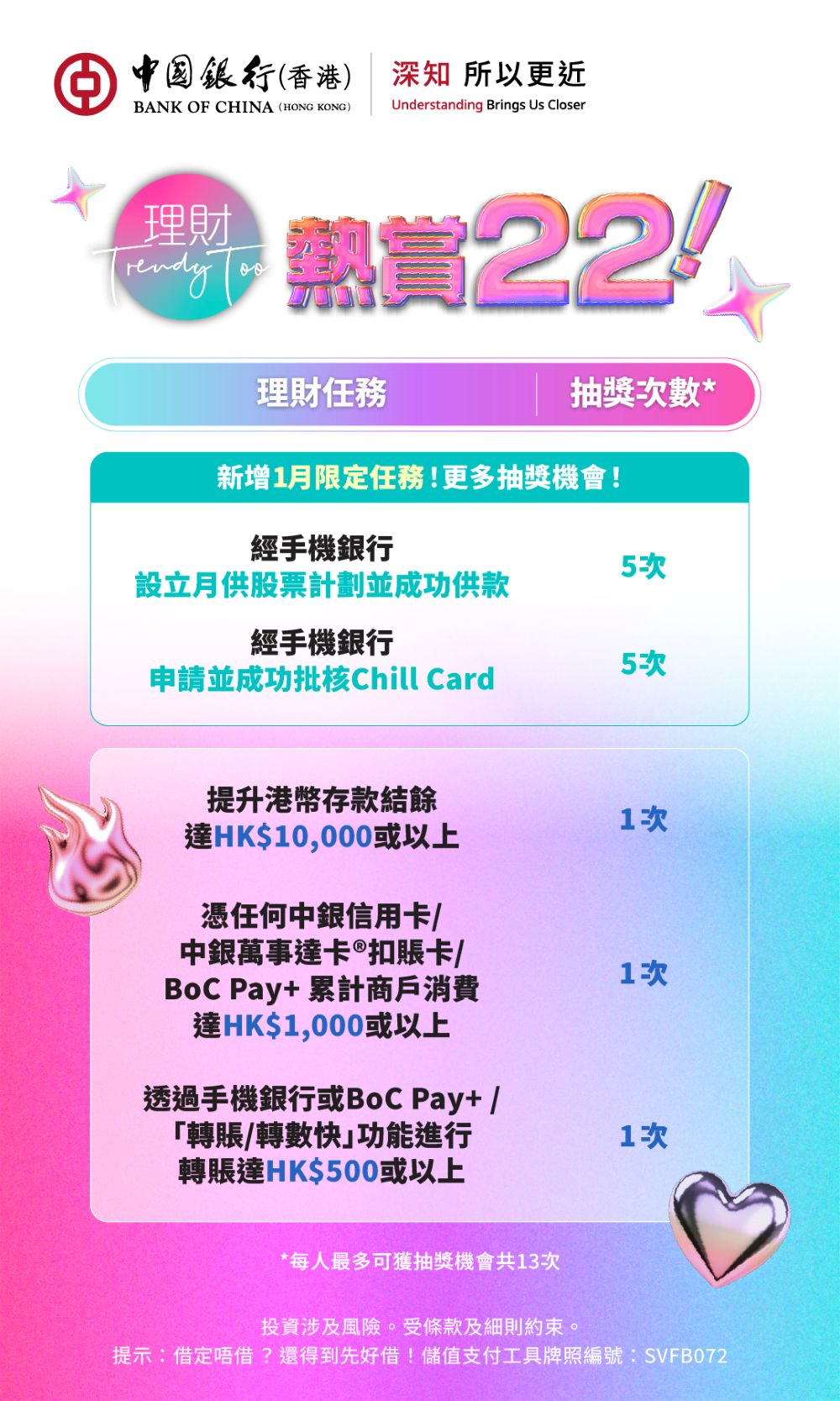 中銀香港客戶完成理財任務最多可獲13次抽獎機會變身理財達人