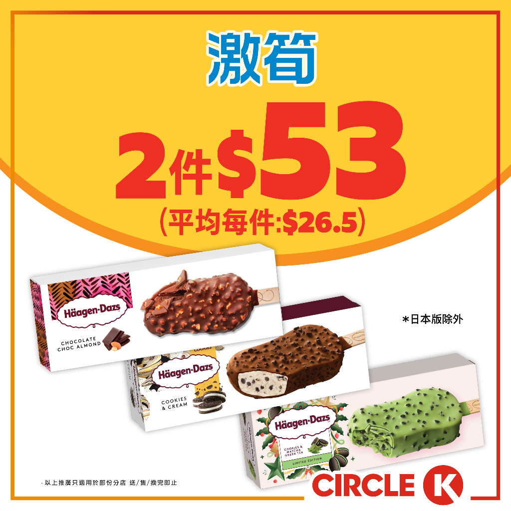 #激筍【Häagen-Dazs脆皮雪糕批 #限時優惠】.由即日起至2月8日,嚟OK便利店買指定* Häagen-Dazs 脆皮雪糕批 (各款),即享優惠價 2件只係$53!平均每件都係$26.5香脆外層加上幼滑雪糕,甜蜜滿足感爆燈!抵到唔使諗,即刻去Circle K大手掃貨啦!.- *優惠不包括日本版。- 貨品數量有限,售完即止。- 圖片只供參考。優惠受有關條款及細則約束。.#OK便利店 #CircleK #HäagenDazs #脆皮雪糕批 #限時優惠 #甜蜜滋味 #激筍價 #Jetso