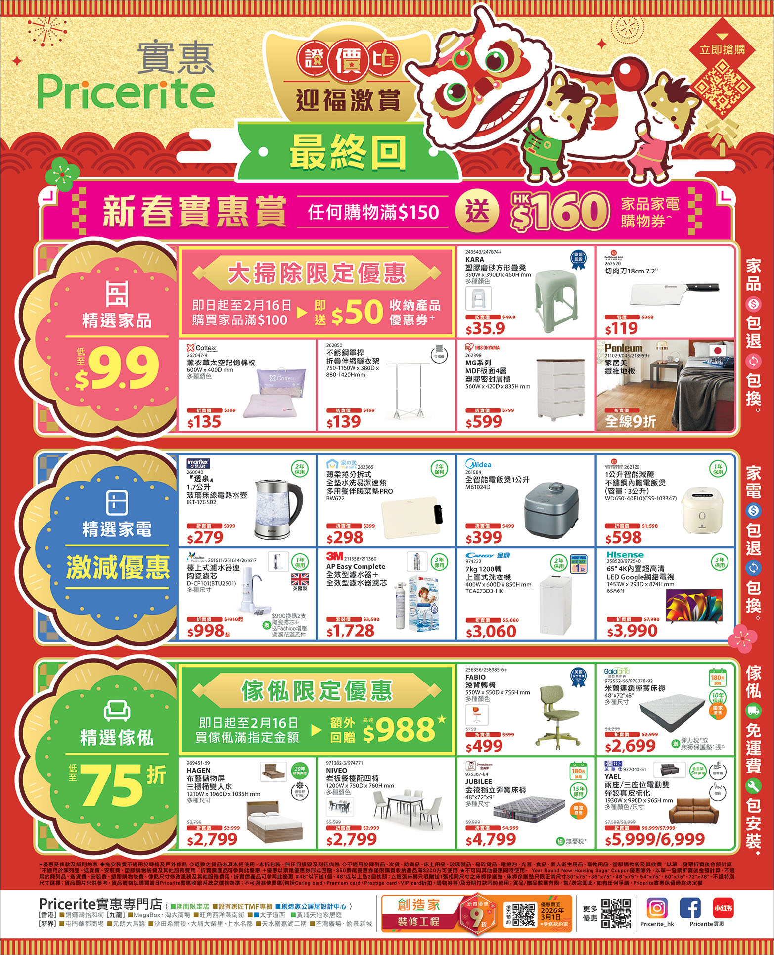 滿$150送$160家品家電購物券*
