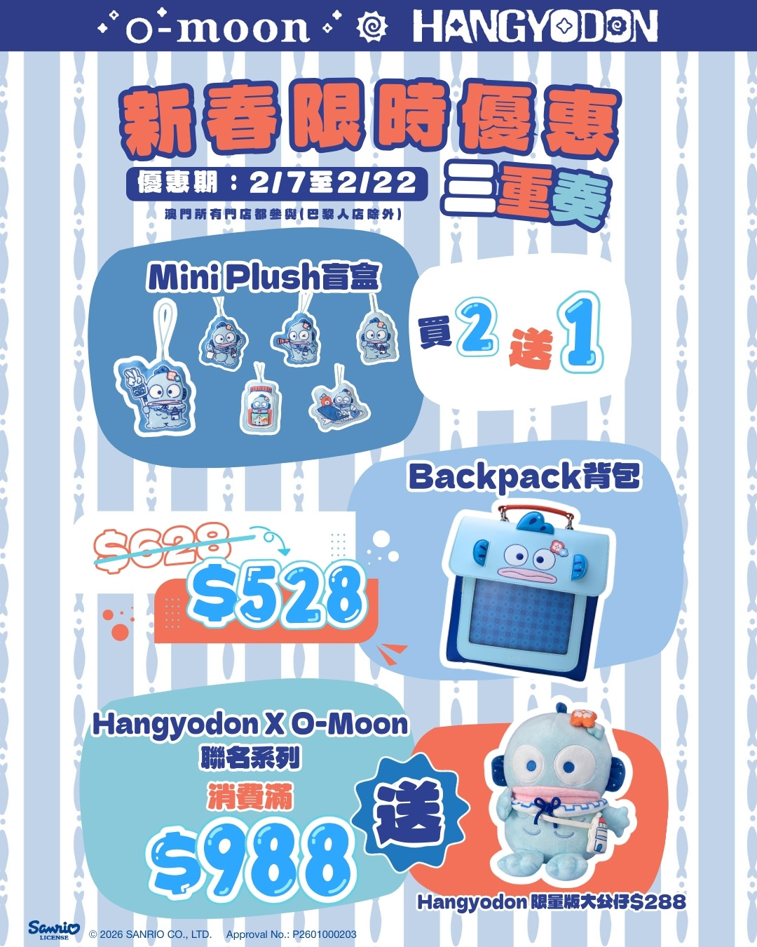 O-moon 現正推出以下多個專屬Hangyodon嘅新春優惠