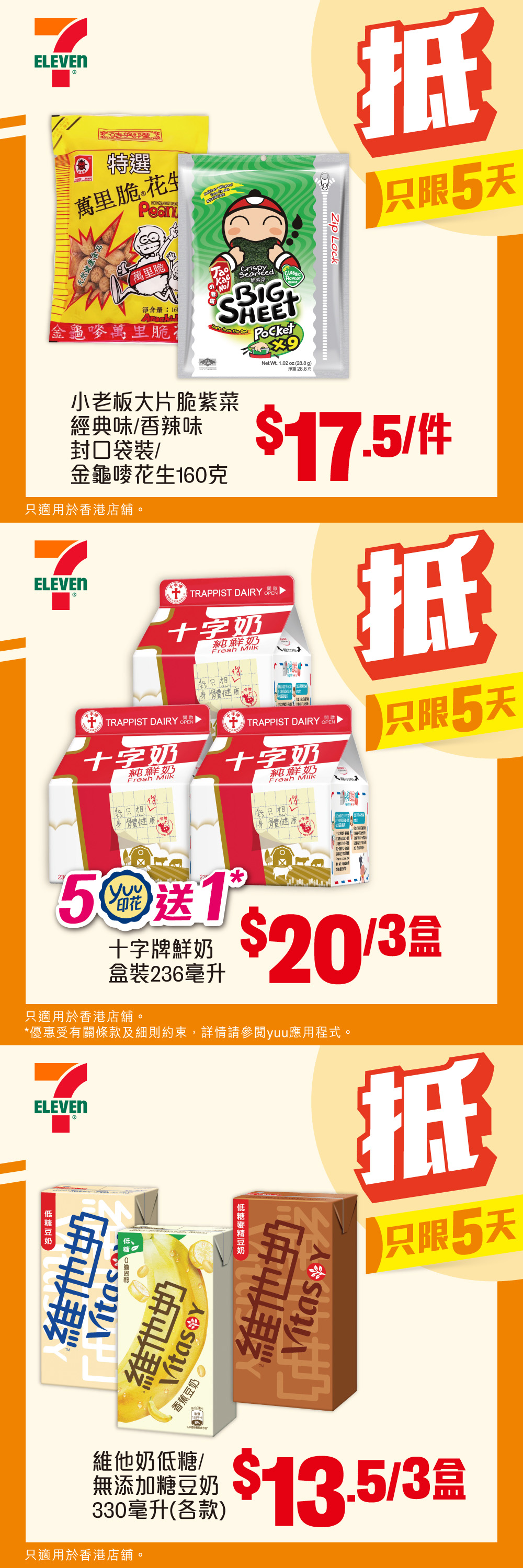 ^優惠有效期由2026年2月11日早上7時至2月17日。以單一交易計算。優惠只適用於香港店舖。部分貨品只限於指定店舖提供。貨品數量有限,售 / 送 / 換完即止。價格於香港店舖以港幣為單位。如有爭議,所有價格以個別店舖為準。貨品圖片只供參考。就一切有關事宜,7-Eleven 將保留最終之決定權。