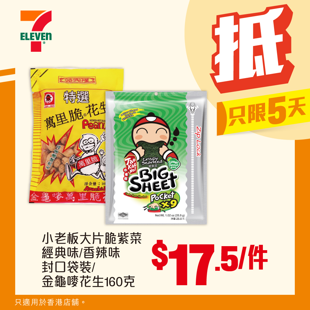 *優惠有效期由即日起至2月17日。優惠只適用於香港店舖。部分貨品只限於指定店舖提供。貨品數量有限,售完即止。如有爭議,所有價格以個別店舖為準。貨品圖片只供參考。就一切有關事宜,7-Eleven將保留最終之決定權。