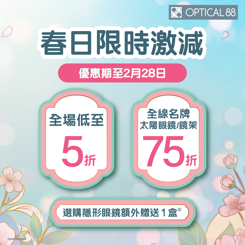 【#OPTICAL88 春日限時激減🌸全場低至5折】