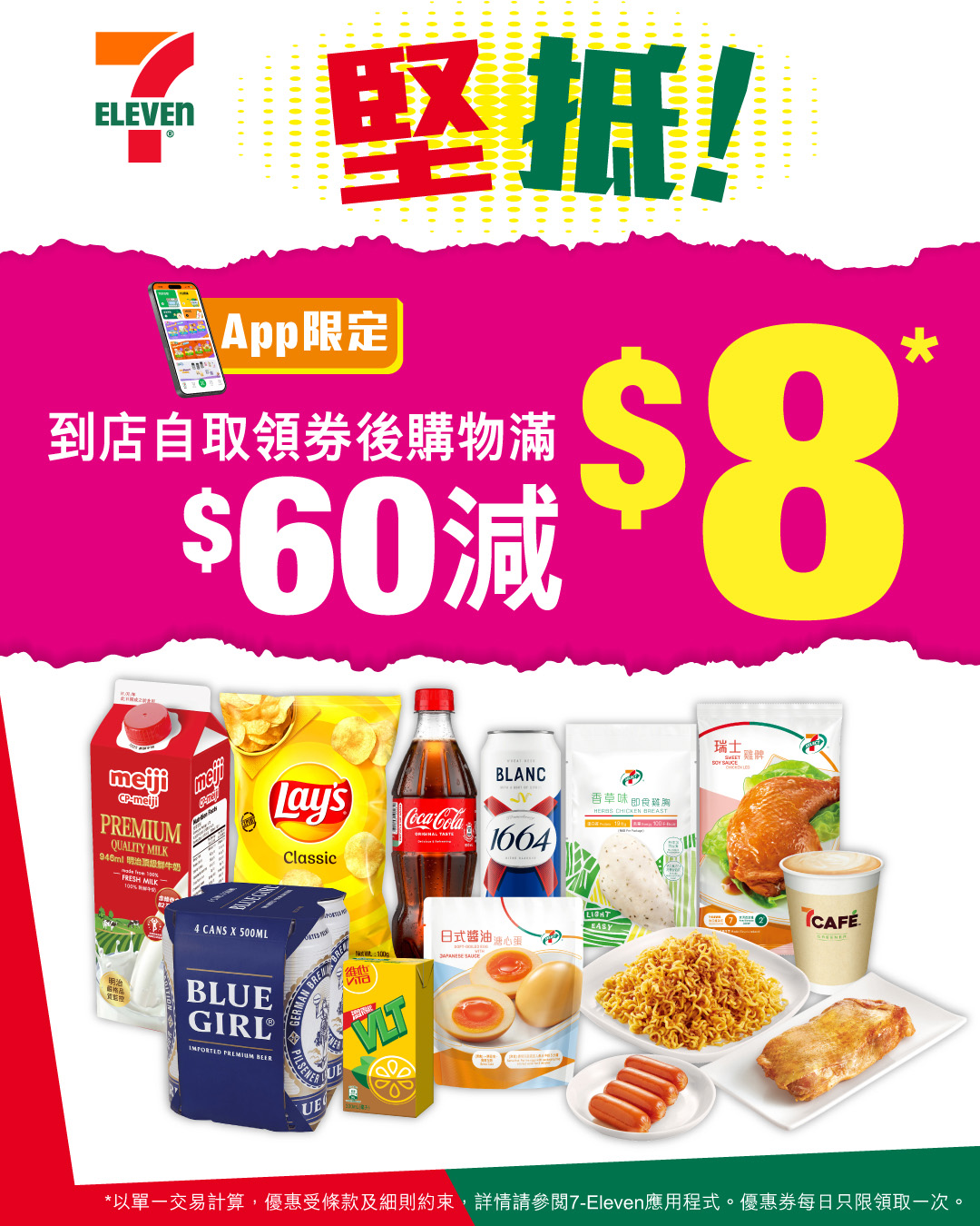 】7仔App最新「堅抵」優惠登場!由2月25日起至3月10 日,7仔App每日送你「堅抵」優惠券