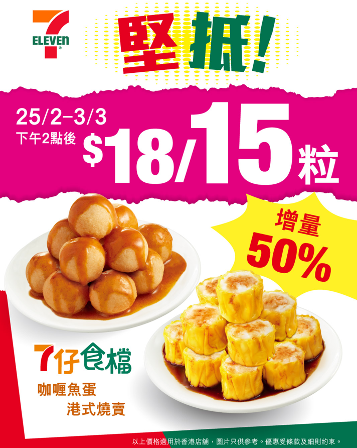 📅 優惠日期:2026年2月25日至3月3日(下午2點後限定) 📍7仔食檔店舖:https://qr1.be/8DJICT 以上價格適用於香港店舖部份貨品只限於指定店舖提供。貨品數量有限,售/換/送完即止。如有爭議,所有價格以個別店舖為準。貨品圖片只供參考。優惠受條款及細則約束,詳情請參閱店內宣傳品。 #7ElevenHK #7Eleven便利店 #7仔食檔 #堅抵 #優惠價 #燒賣#魚蛋 #獨家秘醬 #蔥香豉油 #咖喱汁 |