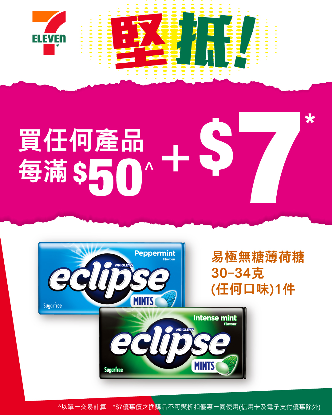 【7-Eleven「堅抵」限優惠 2】 新年食咗咁多煎炸油膩嘢🔥係時候要食得LIGHT啲啦!由即日起 (25/2) 一連兩星期,👍🏻可以優惠價$60*任揀3件7-SELECT即食三文魚或溏心蛋(各款)🤩無論當Light meal定加餸都啱晒呀! 【7-Eleven「堅抵」限時優惠 2】 新年食咗咁多煎炸油膩嘢🔥係時候要食得LIGHT啲啦!由即日起 (25/2) 一連兩星期,👍🏻可以優惠價$60*任揀3件7-SELECT即食三文魚或溏心蛋(各款)🤩無論當Light meal定加餸都啱晒呀! 【7-Eleven「堅抵」限時優惠 3】 7仔App「堅抵」優惠新登場!由即日起 (2月25日) 至3月10 日,7仔App每日送你「堅抵」優惠券🤩憑券於到店自取消費滿$60即減$8*!🔥7仔App用戶每日都可以拎一次優惠券,連續兩星期日日都有著數等緊你😆 【7-Eleven「堅抵」限時優惠 4】 📣7仔堅抵限時優惠🪄由即日起 (25/2) 一連7日,嚟7仔買任何產品每滿$50 即可+$7* 換購易極無糖薄荷30-34克(任何口味)1件🍃!Eclipse無糖薄荷糖🍃隨手一罐就可以帶嚟瞬間清新感覺😁! 另外,由即日起 (25/2) 至3月3日都可以限時優惠價$10購買易極無糖薄荷糖強勁薄荷味/超強薄荷味/冰涼薄荷味/清香薄荷味/冰極檸檬味/青蘋果味/青檸味/士多啤梨味/西瓜味/提子味/蜜桃味心型 30-34克1件^,快啲嚟買啦✨! *優惠有效期由2026年2月25日早上7時至3月3日。以單一交易計算。$7優惠價之換購品不可與折扣優惠一同使用(信用卡及電子支付優惠除外)。部份貨品只限於指定店舖提供。貨品數量有限,售/送/換完即止。不可與其他優惠同時使用。如有爭議,所有價格以個別店舖為準。貨品圖片只供參考。優惠受條款及細則約束,詳情請參閱店內宣傳品。優惠受條款及細則約束,詳情請參閱7-Eleven應用程式。 ^優惠有效期由2026年2月25日早上7時至3月3日。部份貨品只限於指定店舖提供。貨品數量有限,售/送/換完即止。不可與其他優惠同時使用。如有爭議,所有價格以個別店舖為準。貨品圖片只供參考。優惠受條款及細則約束,詳情請參閱店內宣傳品。優惠受條款及細則約束,詳情請參閱7-Eleven應用程式。 #7ElevenHK #7ElevenMacau #限時優惠 📣7-SELECT蛋白之選✨堅抵優惠🔥千祈唔好錯過呀!用手機落單,「到店自取」更輕鬆📱快啲開App掃貨啦:https://qr1.be/FENFHI |