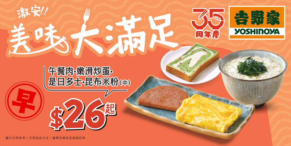 *圖片只供參考 | 早午茶市供應 | 只限指定分店 | 餐種及飲品供應以個別分店為準| 優惠受條款及細則約束