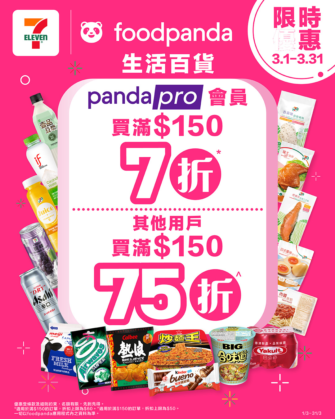 7仔再度為大家帶嚟超著數foodpanda #生活百貨 限時優惠