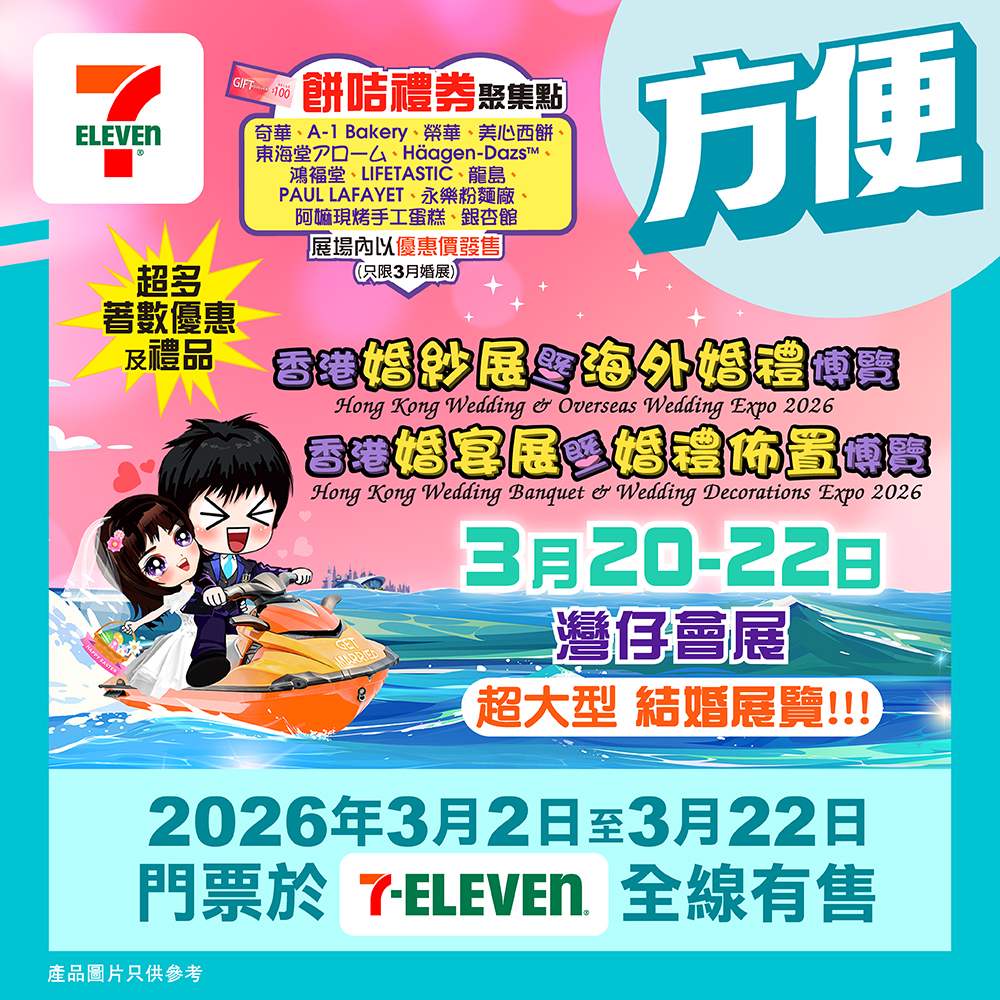 :https://wedding.expo.com.hk/#入場禮物#祝福#幸福#婚展#結婚#婚禮#婚紗#weddingexpo#酒樓#酒店#婚宴場地#證婚#婚紗裙褂#過大禮#酒樓婚宴#酒店婚宴#婚紗攝影#婚紗禮服#珠寶首飾#7ElevenHK#711婚展門票#7Eleven婚展門票