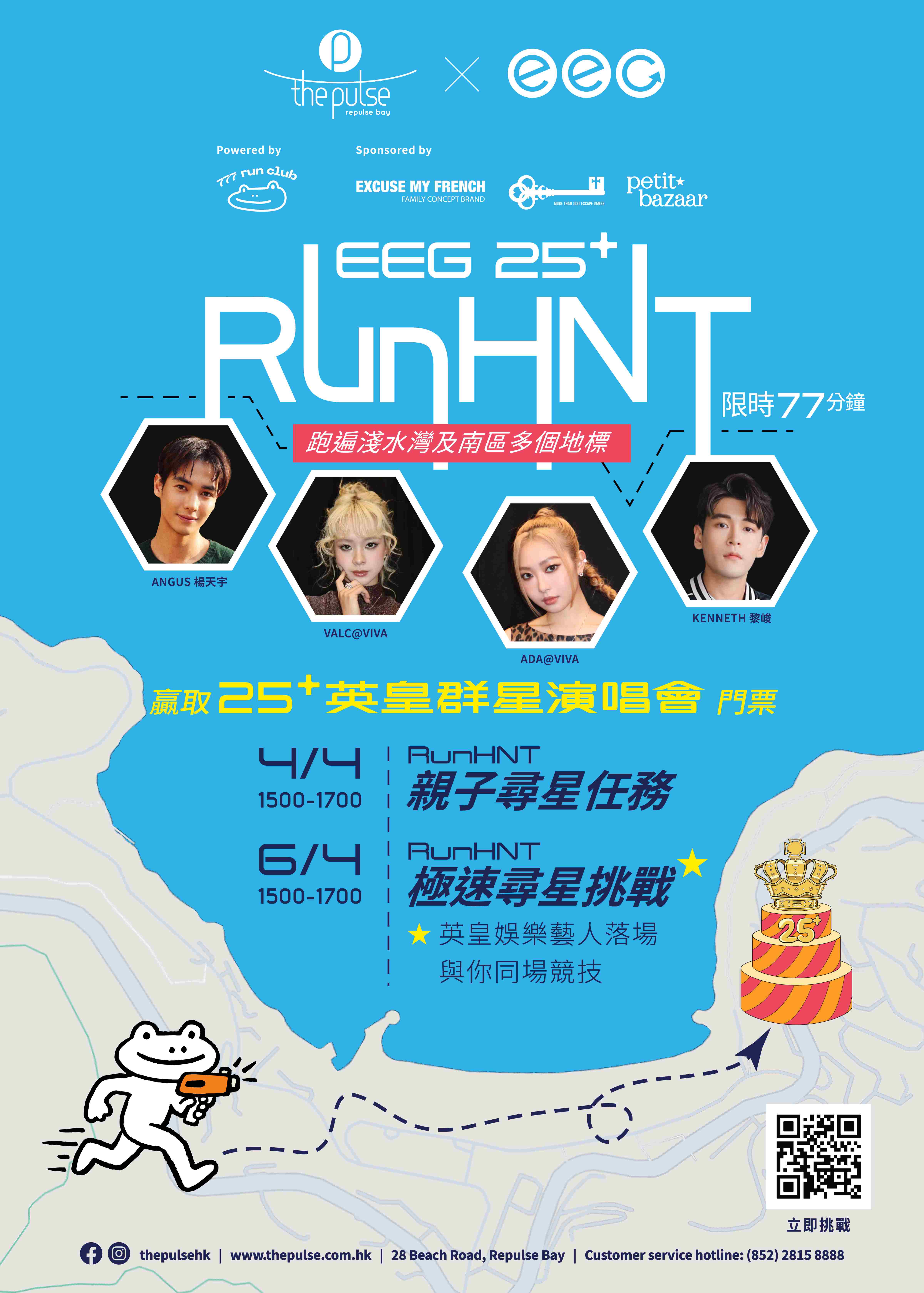 25+ RunHNT」。參加者只需2人組隊,由The Pulse 出發,在南區沿途尋找隱藏的明星應援物並掃碼得分,最快最高分完成任務的隊伍即可贏取《恒生保險呈獻:25+英皇群星演唱會》門票2張,展開一場前所未有的「尋星 × 城市探索」體驗。