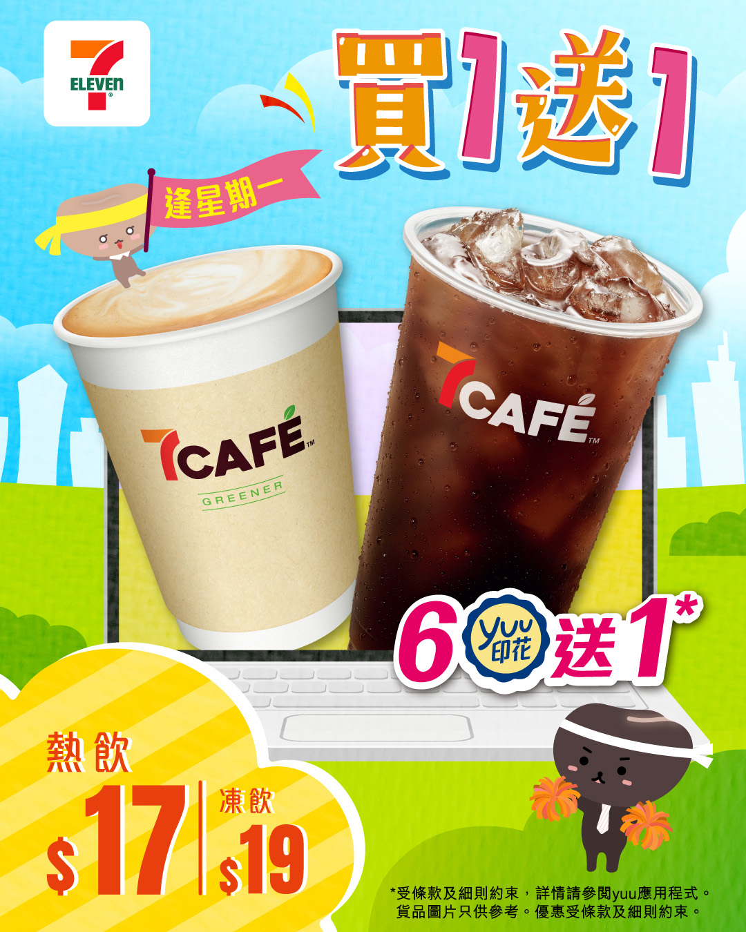 宜家yuu會員購買指定7CAFÉ即磨咖啡(熱/凍)可獲印花1個,儲滿6個印花即送1杯*!