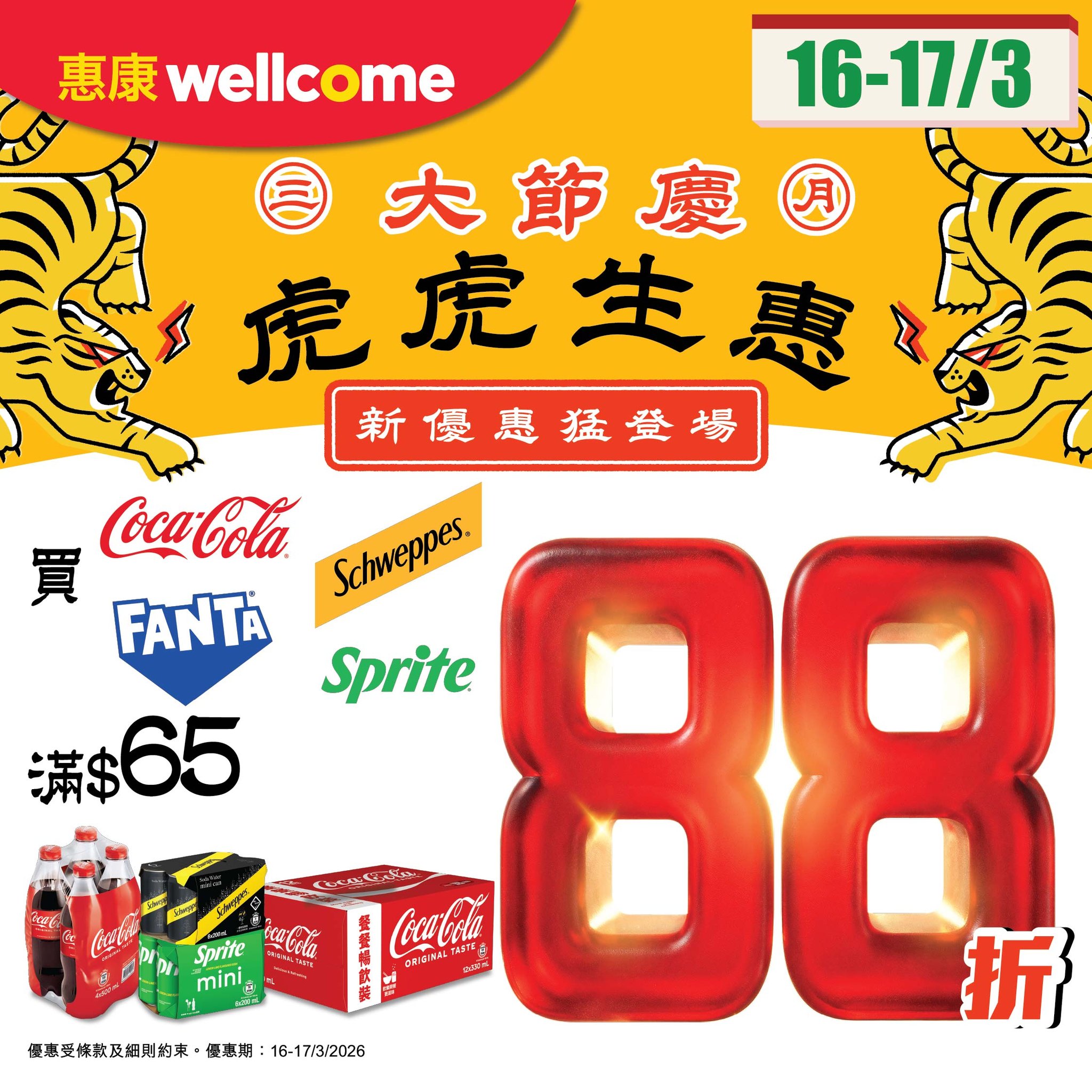 】惠康優惠繼續猛登場!今期買可口可樂/芬達/玉泉/雪碧汽水滿$65,即享88折!多款可口可樂