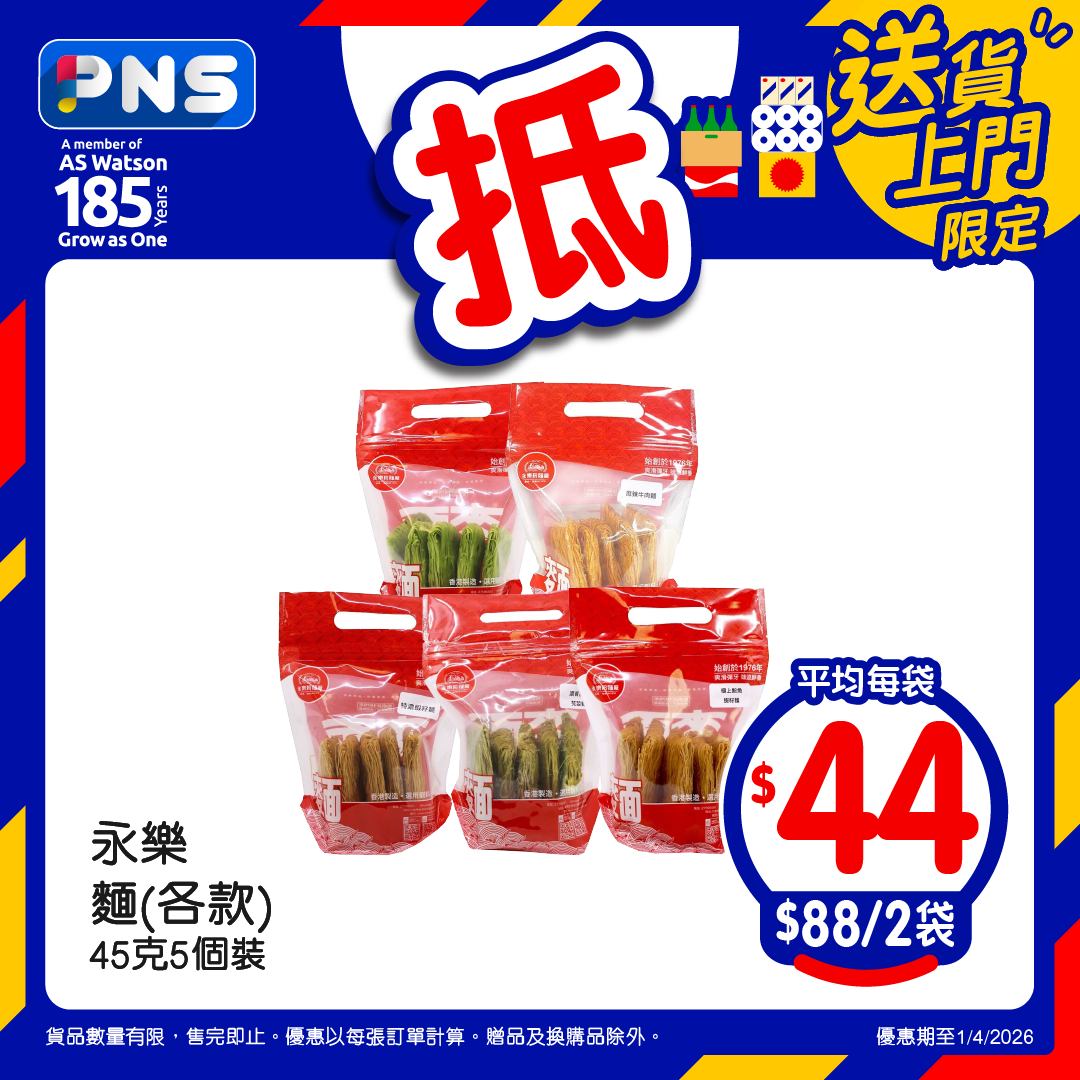 永樂麵45克5個裝(各款),優惠價$88/2袋,平均$44/袋