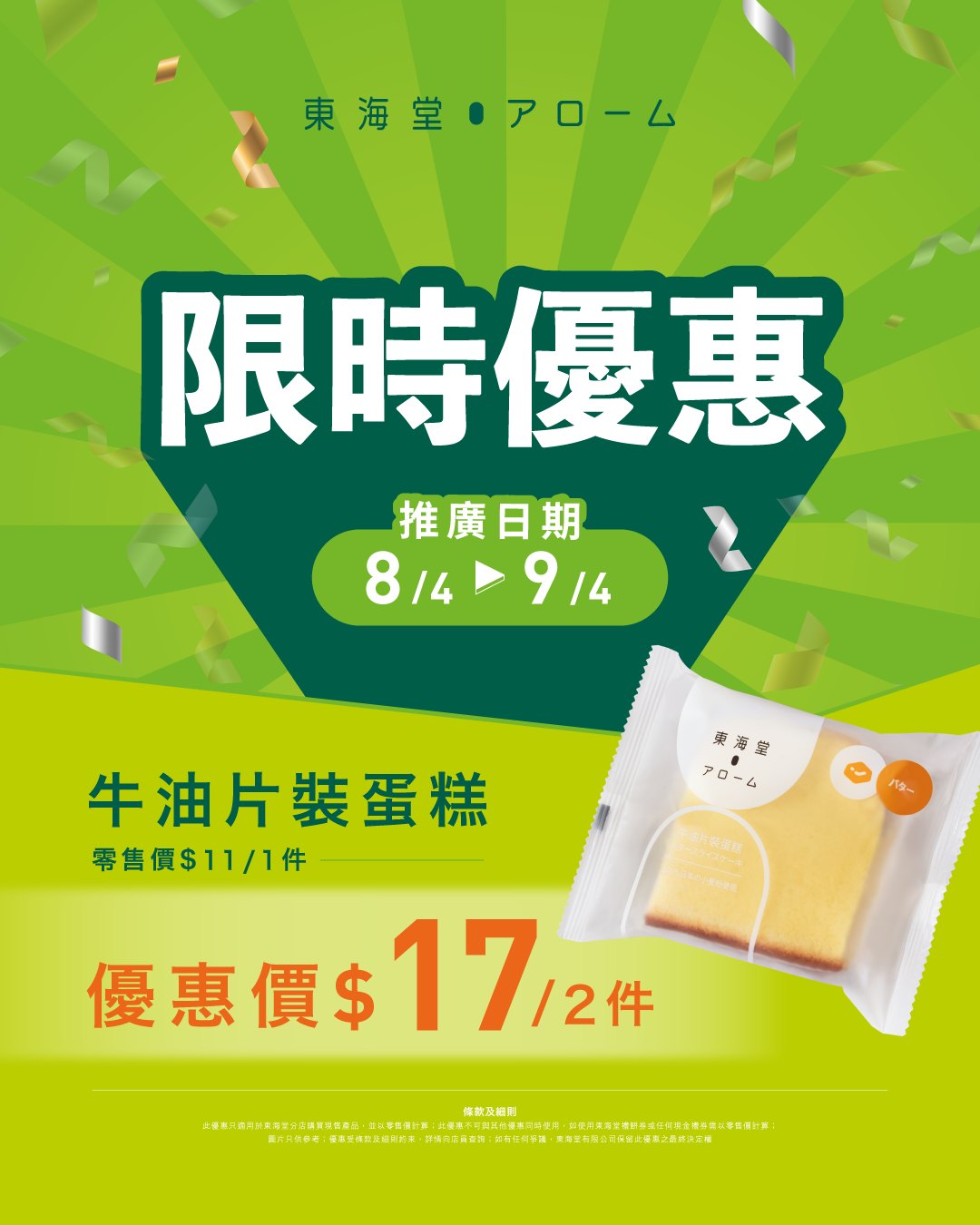 【✨4月8至9日|門市限定 牛油片裝蛋糕 限時優惠🍞】