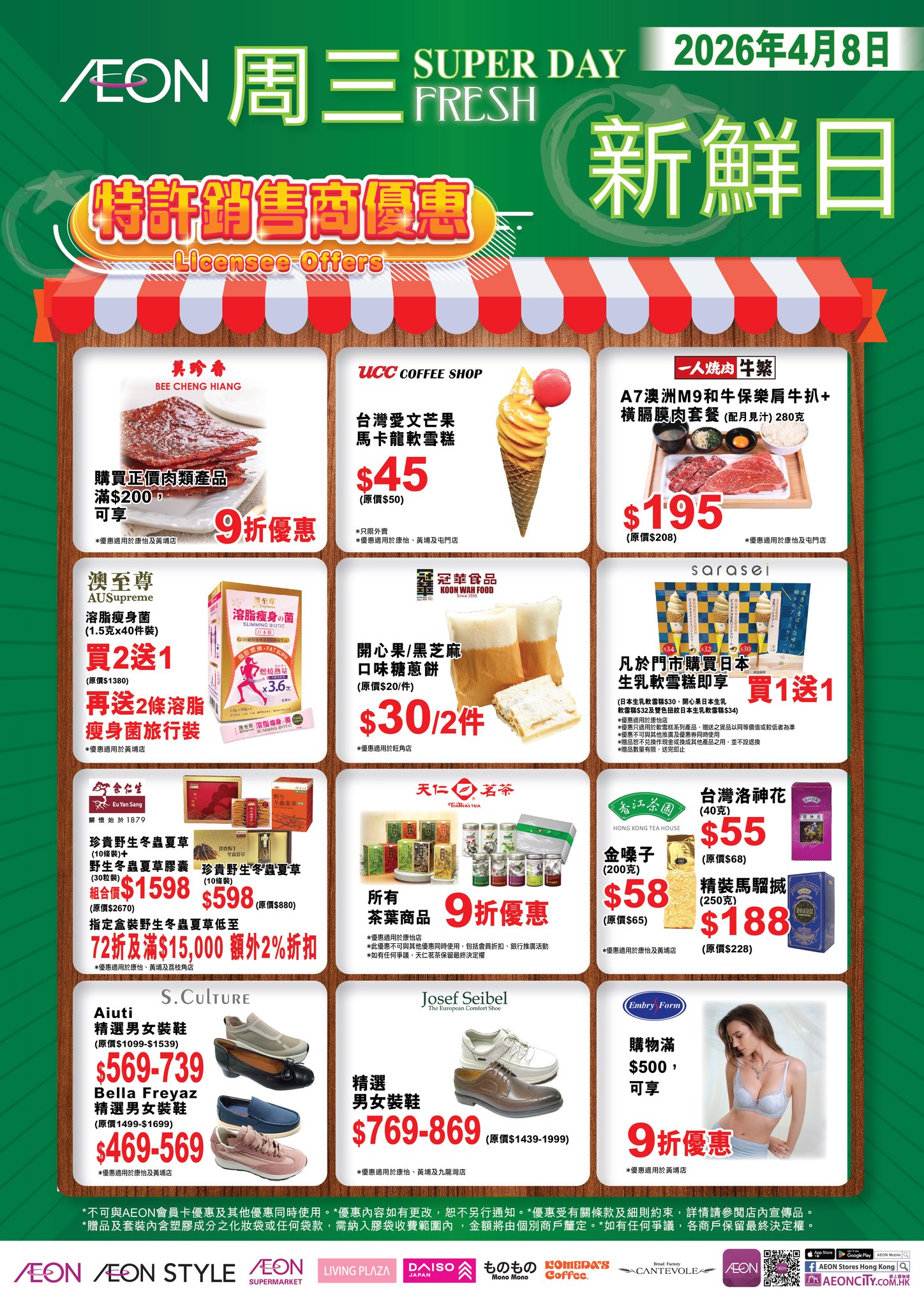 指定特許銷售商仲有周三新鮮日優惠,只係特定分店有架咋,快d黎AEON睇睇啦!