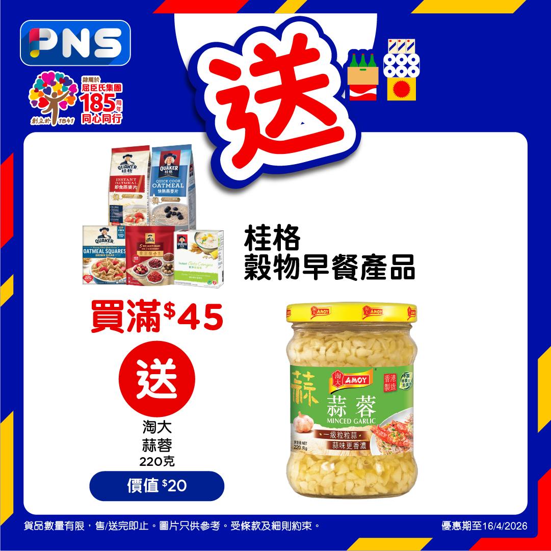 即減$5優惠期至2026年4月16日。優惠適用於有售賣此貨品之香港百佳店舖及PNS網購。其他產品只適用於PNS網購。需登入PNS網購以查看贈品優惠。贈品數量有限,送完即止。優惠以每張訂單計算。圖片只供參考。受條款及細則約束。