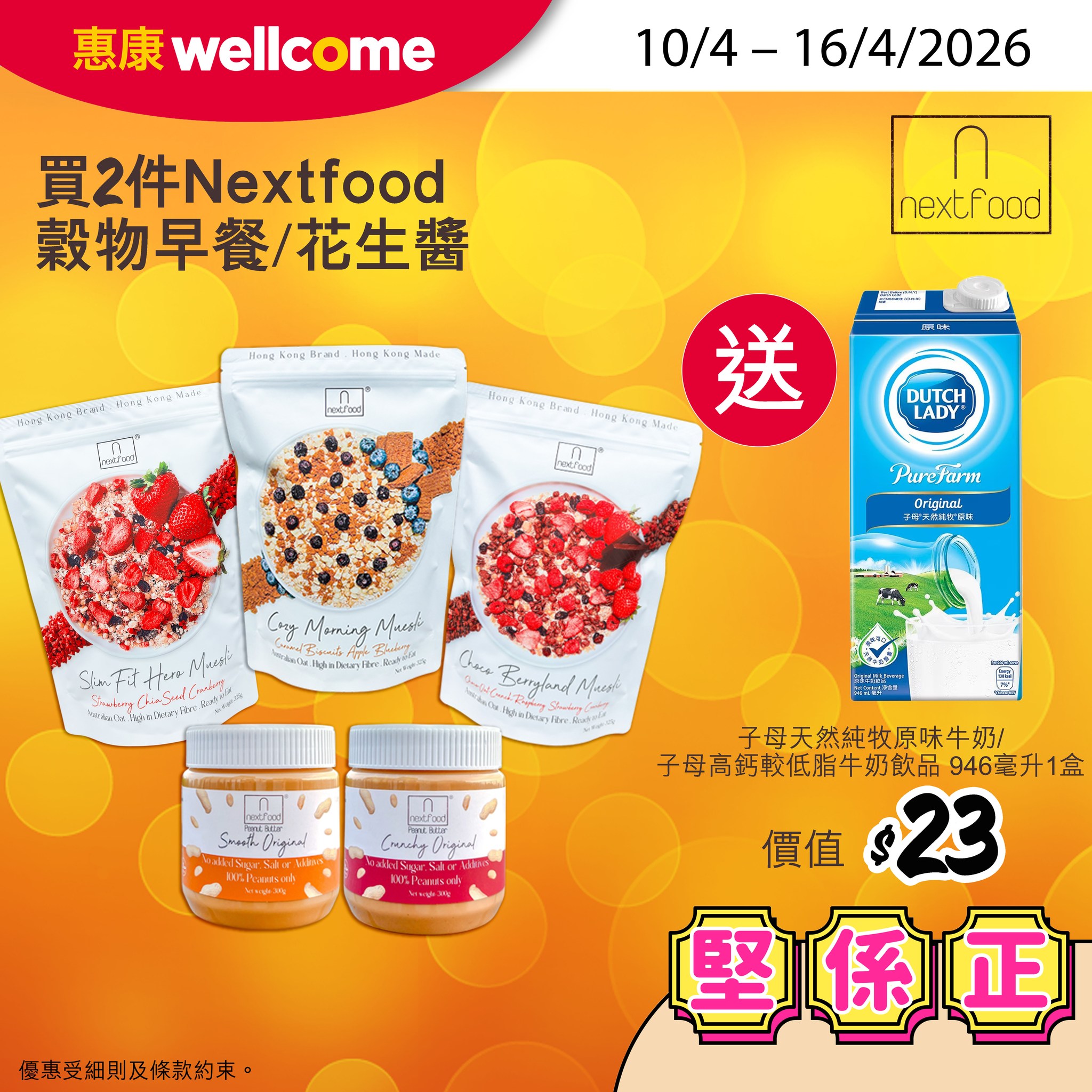 部分優惠適用於惠康網店/Market Place網店/yuu網購。以單一發票及折實價計算。貨品/ /贈品數量有限,送/售完即止 。部分貨品只限指定分店提供。優惠受條款及細則約束。貨品圖片只供參考。