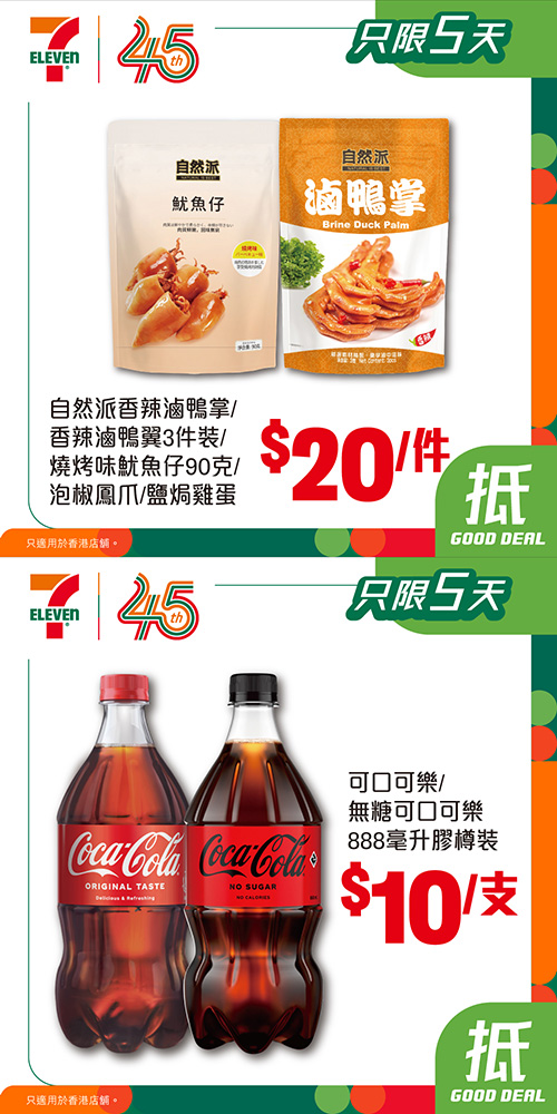 *優惠有效期由2026年4月17日早上7時至4月21日。優惠只適用於香港店舖。部分貨品只限於指定店舖提供。貨品數量有限,售完即止。如有爭議,所有價格以個別店舖為準。貨品圖片只供參考。就一切有關事宜,7-Eleven將保留最終之決定權。