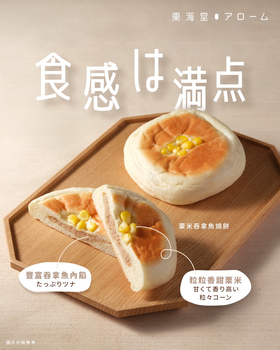 全新粟米吞拿魚燒餅,以豐富吞拿魚內餡作為主角,配上粒粒香甜粟米,口感更添層次鹹香中帶點清甜粟米味,令人一試便愛上,每一口都滿載滿足感!