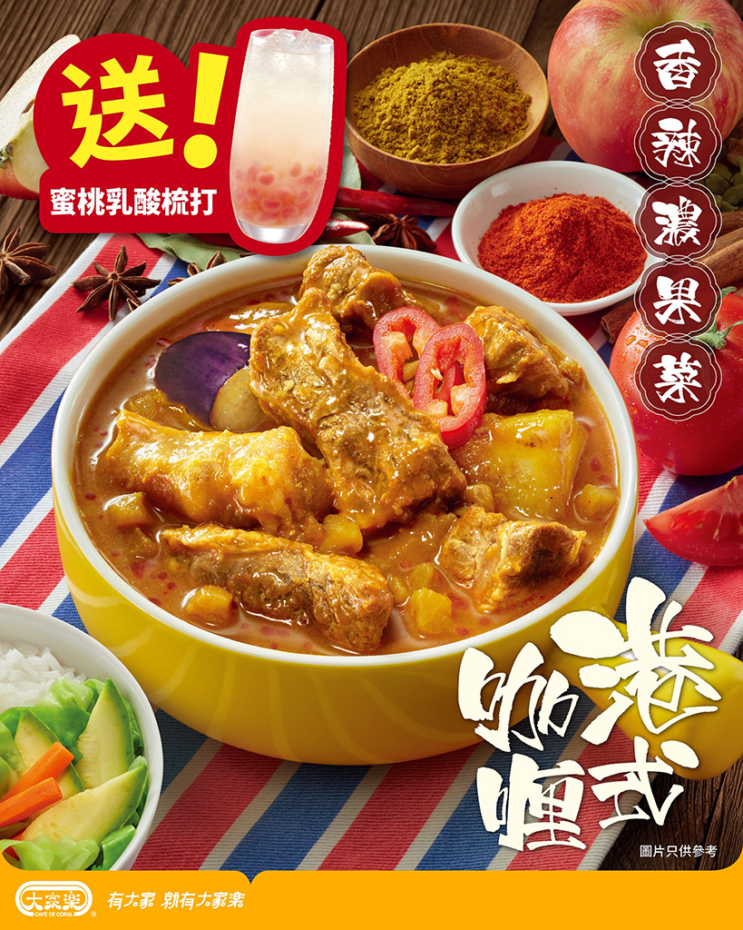 #CafedeCoral #CafedeCoralhk #大家樂 #有大家就有大家樂 #港式咖喱 #咖喱系列 #送蜜桃乳酸梳打 #期間限定 #午晚市推介