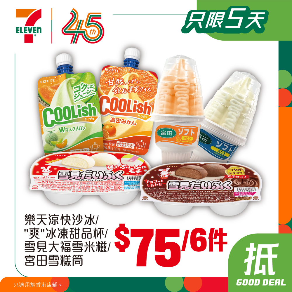 *只適用於香港店舖。部分貨品只限於指定店舖提供。貨品數量有限,售/送/換完即止。如有爭議,所有價格以個別店舖為準。貨品圖片只供參考。就一切有關事宜,7-Eleven將保留最終之決定權。