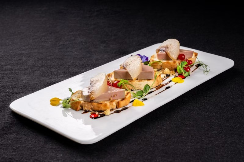 法式凍食鵝肝多士 (3件) 配接骨木花酒燴梨
