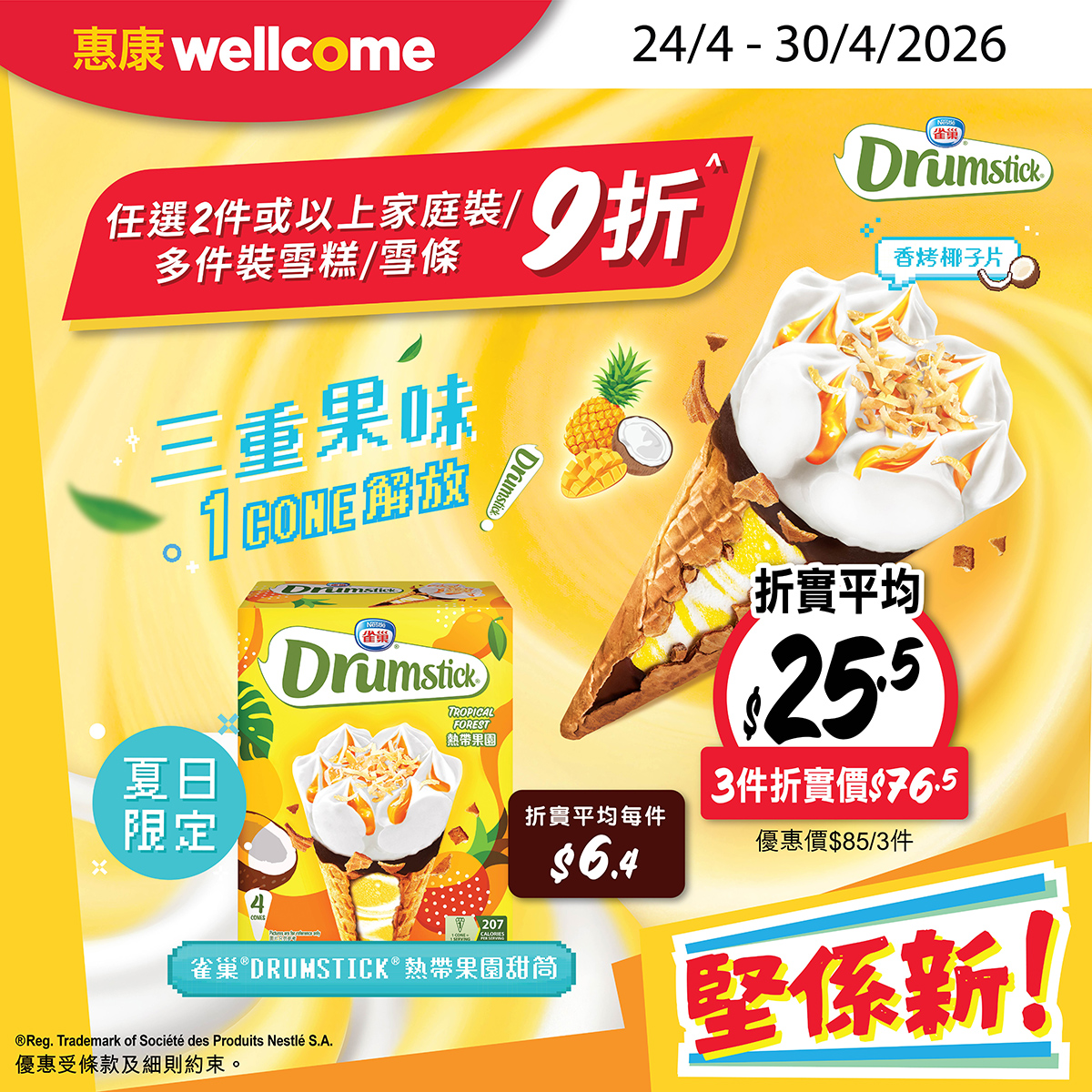 ,唔好錯過多款新登場嘅產品!今期有雀巢® DRUMSTICK®甜筒、牙齦適牙膏、紫堡牌片裝芝士及紐西蘭Westgold牛油,快啲嚟入貨啦